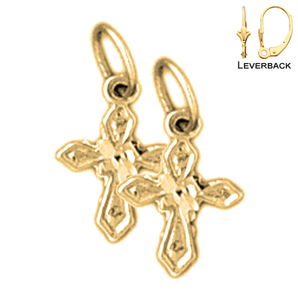 This is a beautiful 14k yellow gold 16mm passion cross earrings. This 14k yellow gold earrings measures 16 mm in length by 9 mm width. JewelsObsession creates all gold jewelry in our state of the art manufacturing facility.
