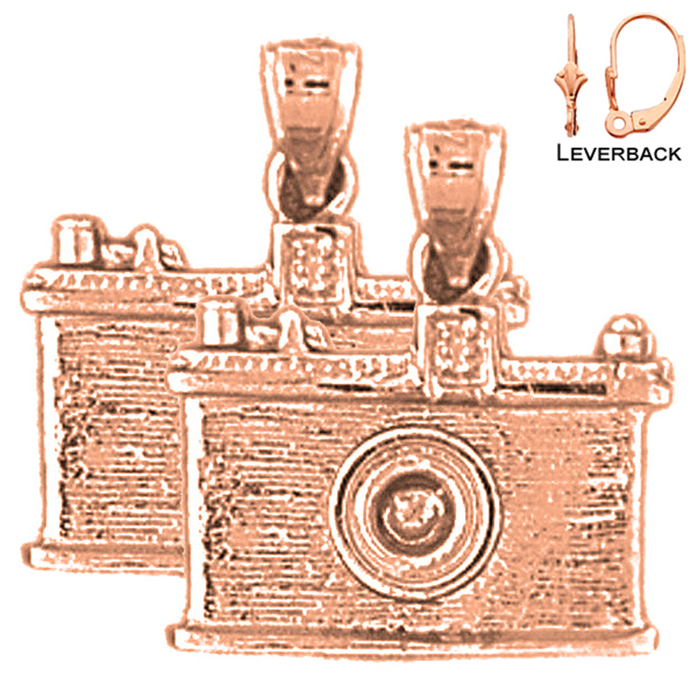 This is a stunning 14k yellow gold 18mm 3d camera earrings. This 14k yellow gold earrings measures 18 mm in length by 15 mm width. JewelsObsession creates all gold jewelry in our state of the art manufacturing facility.