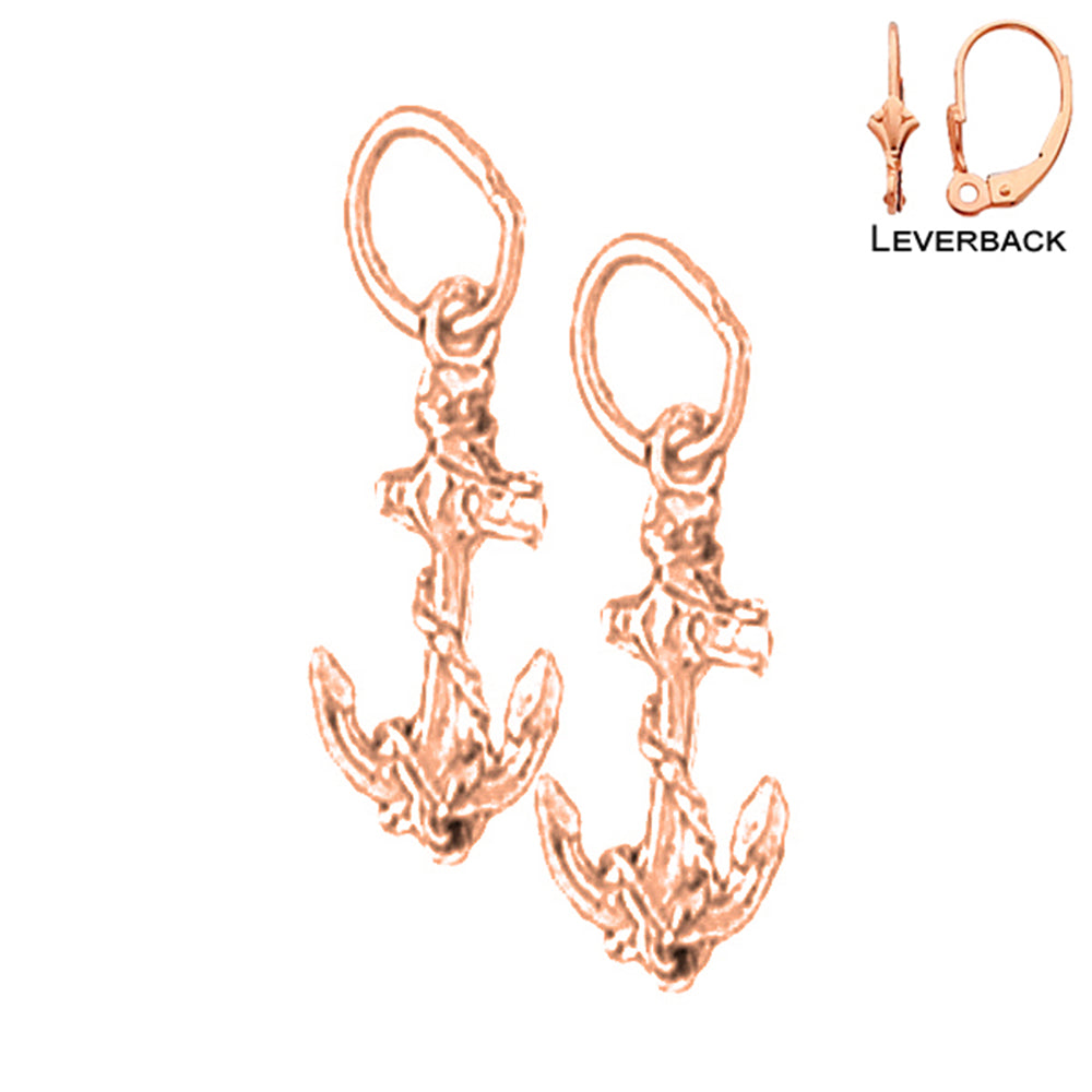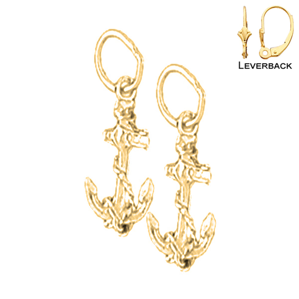 14K or 18K Gold 18mm Anchor With Rope Earrings