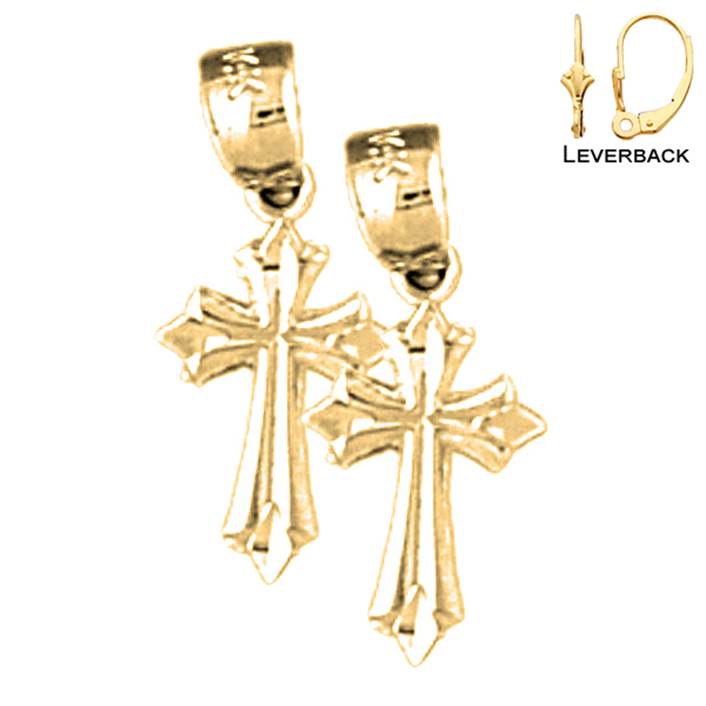 This is a gorgeous 14k yellow gold 18mm budded cross earrings. This 14k yellow gold earrings measures 18 mm in length by 8 mm width. JewelsObsession creates all gold jewelry in our state of the art manufacturing facility.
