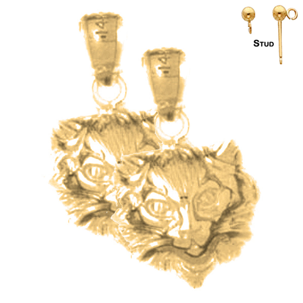 This is an elegant 14k yellow gold 19mm cat earrings. This 14k yellow gold earrings measures 19 mm in length by 13 mm width. JewelsObsession creates all gold jewelry in our state of the art manufacturing facility.