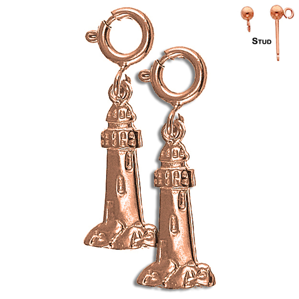 This is an elegant 14k yellow gold 19mm lighthouse earrings. This 14k yellow gold earrings measures 19 mm in length by 7 mm width. JewelsObsession creates all gold jewelry in our state of the art manufacturing facility.