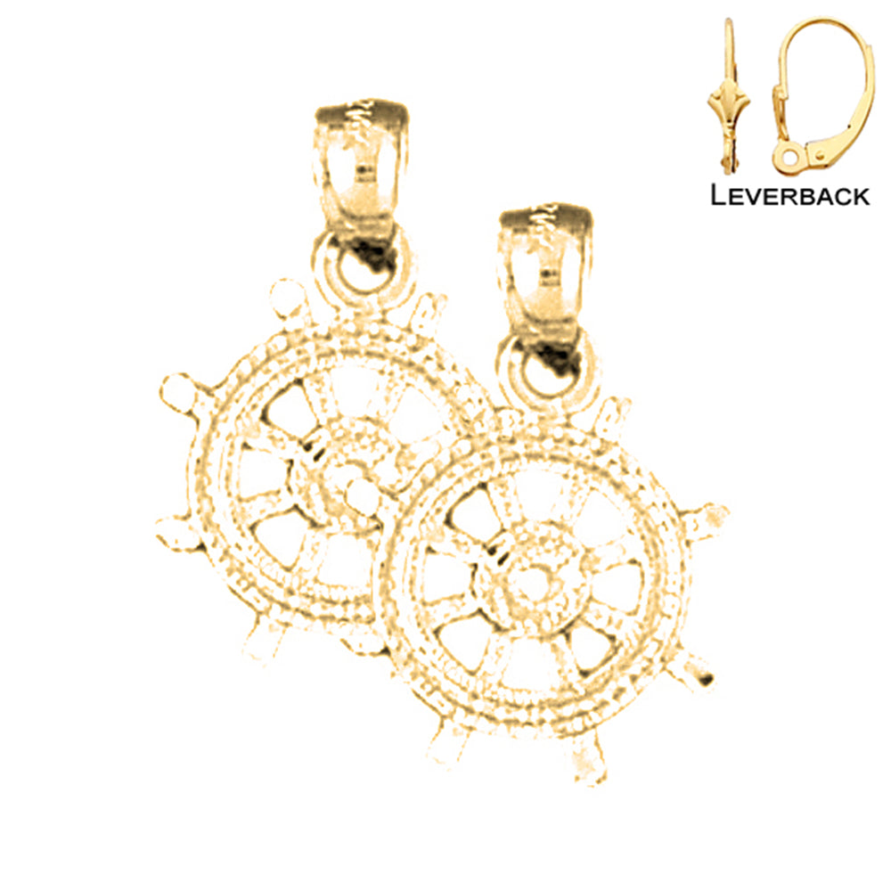 14K or 18K Gold 19mm Ships Wheel Earrings