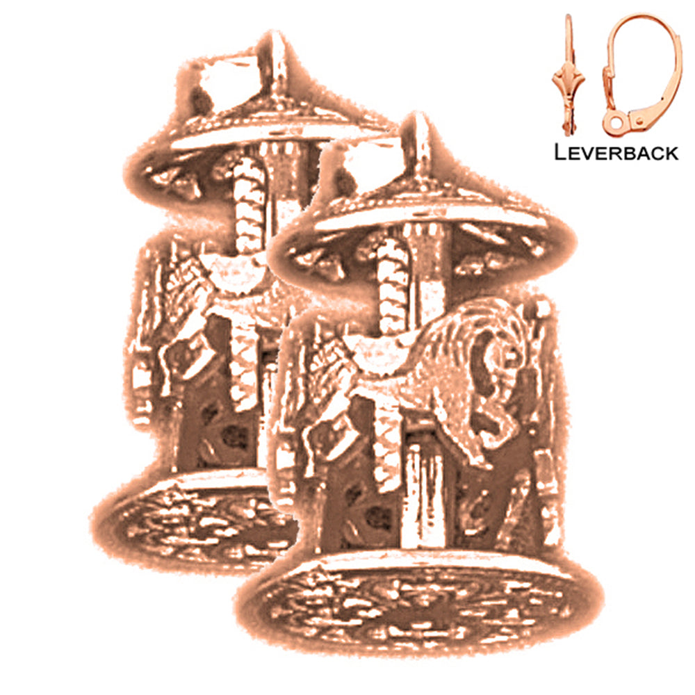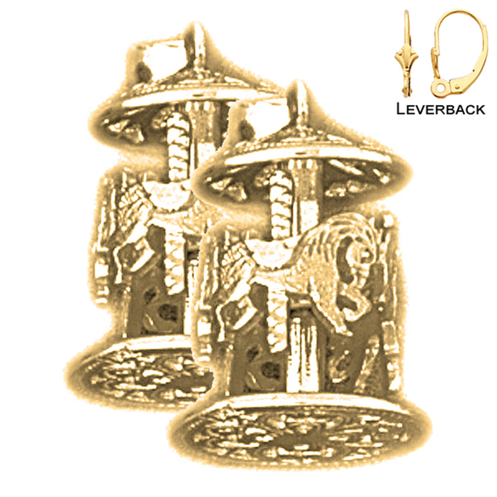 14K or 18K Gold 20mm 3D Carousel Earrings