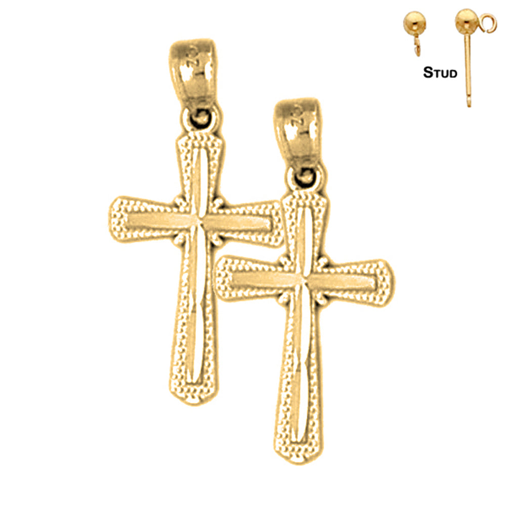 This is a gorgeous 14k yellow gold 20mm budded cross earrings. This 14k yellow gold earrings measures 20 mm in length by 11 mm width. JewelsObsession creates all gold jewelry in our state of the art manufacturing facility.