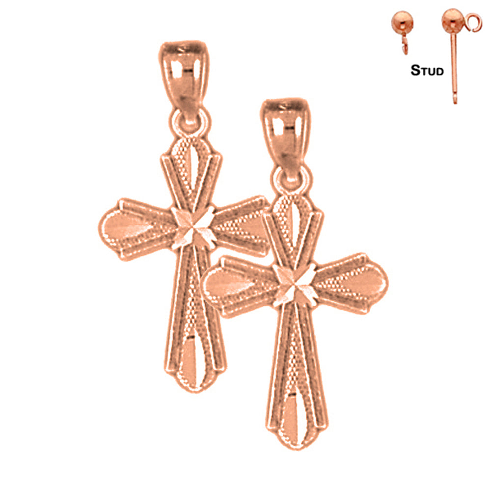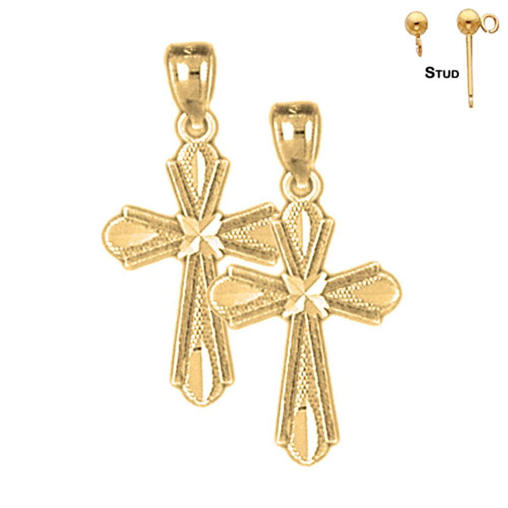 14K or 18K Gold 20mm Budded Cross Earrings