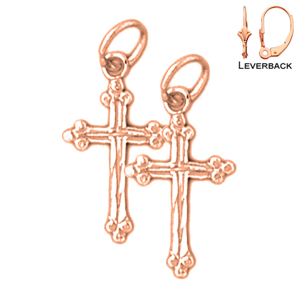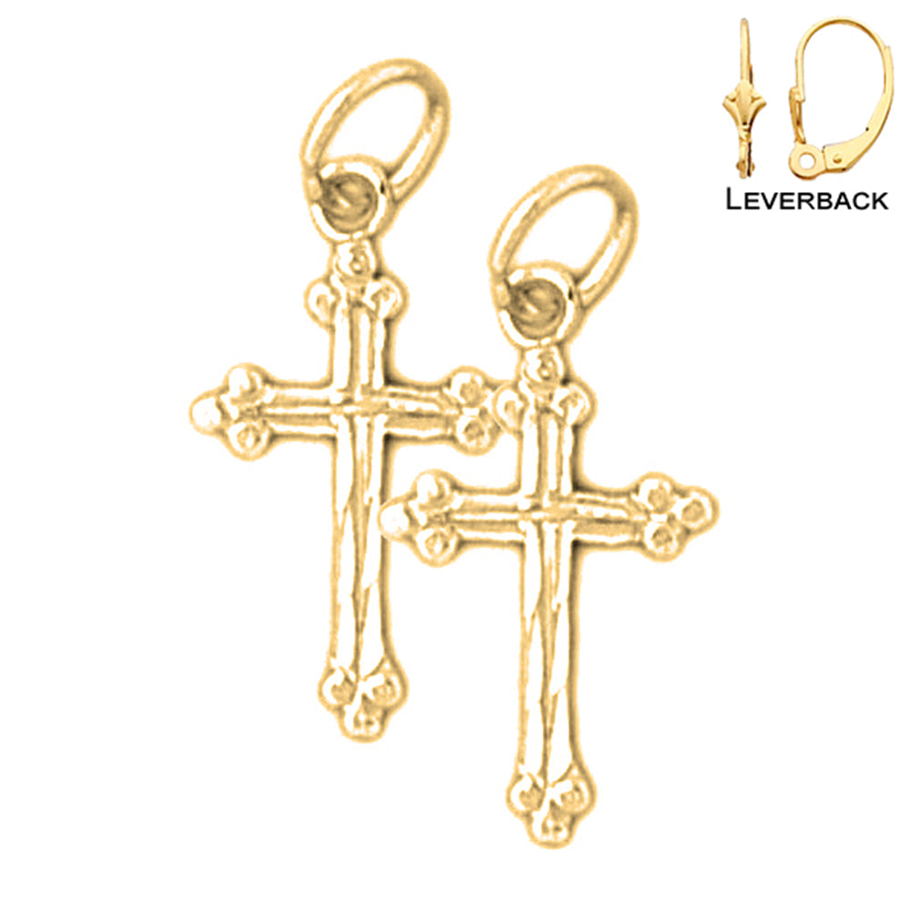 14K or 18K Gold 20mm Budded Cross Earrings