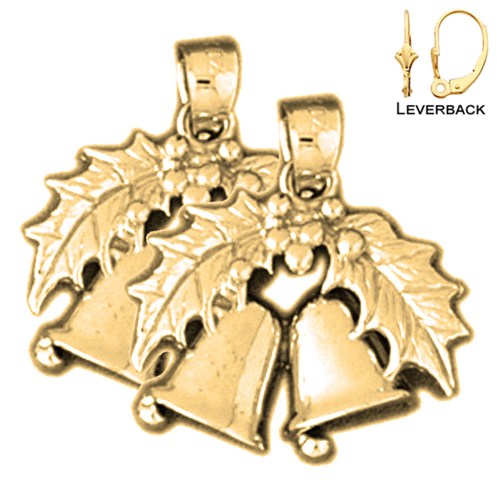 14K or 18K Gold 20mm Christmas Bell Earrings