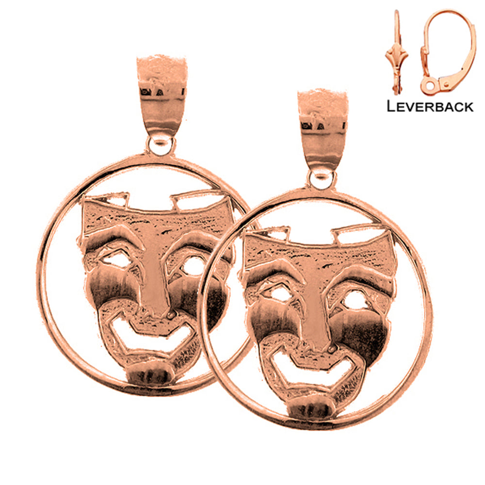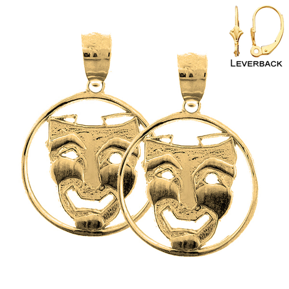 14K or 18K Gold 20mm Drama Mask, Laugh Now Earrings