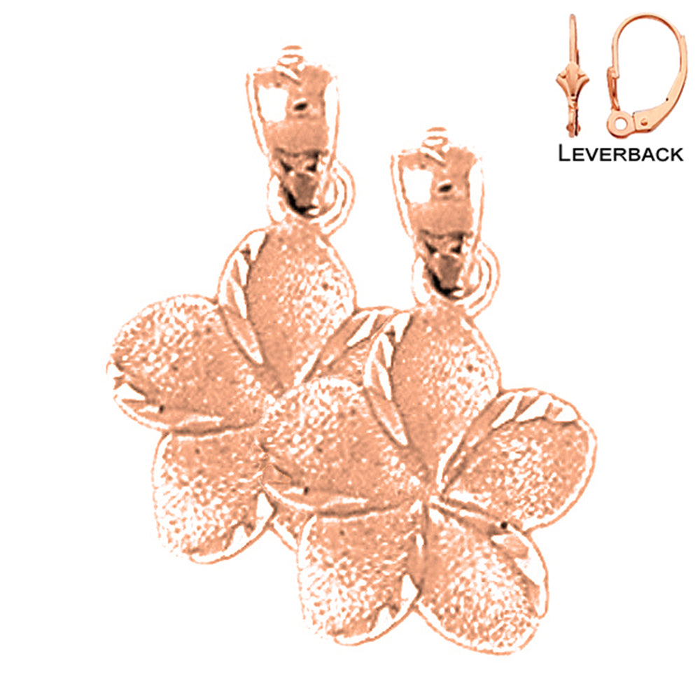 14K or 18K Gold 20mm Plumeria Flower Earrings