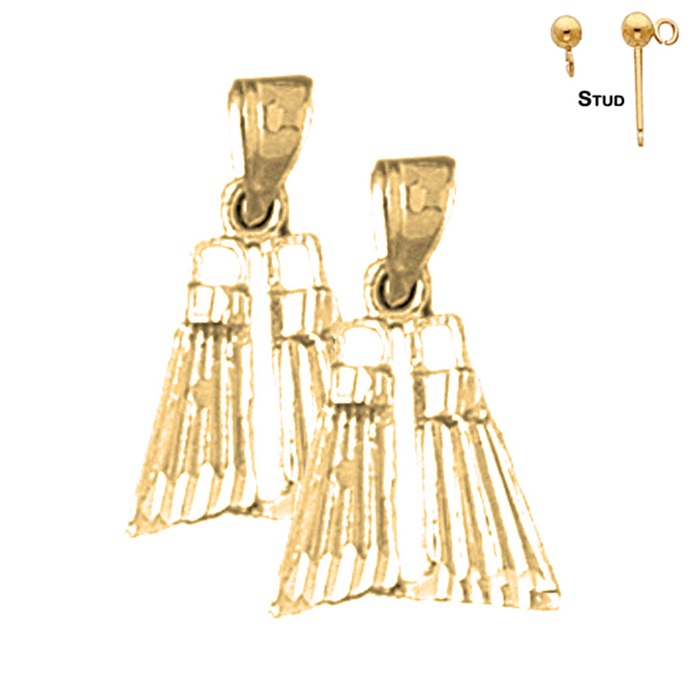 This is a stunning 14k yellow gold 20mm scuba finns earrings. This 14k yellow gold earrings measures 20 mm in length by 12 mm width. JewelsObsession creates all gold jewelry in our state of the art manufacturing facility.