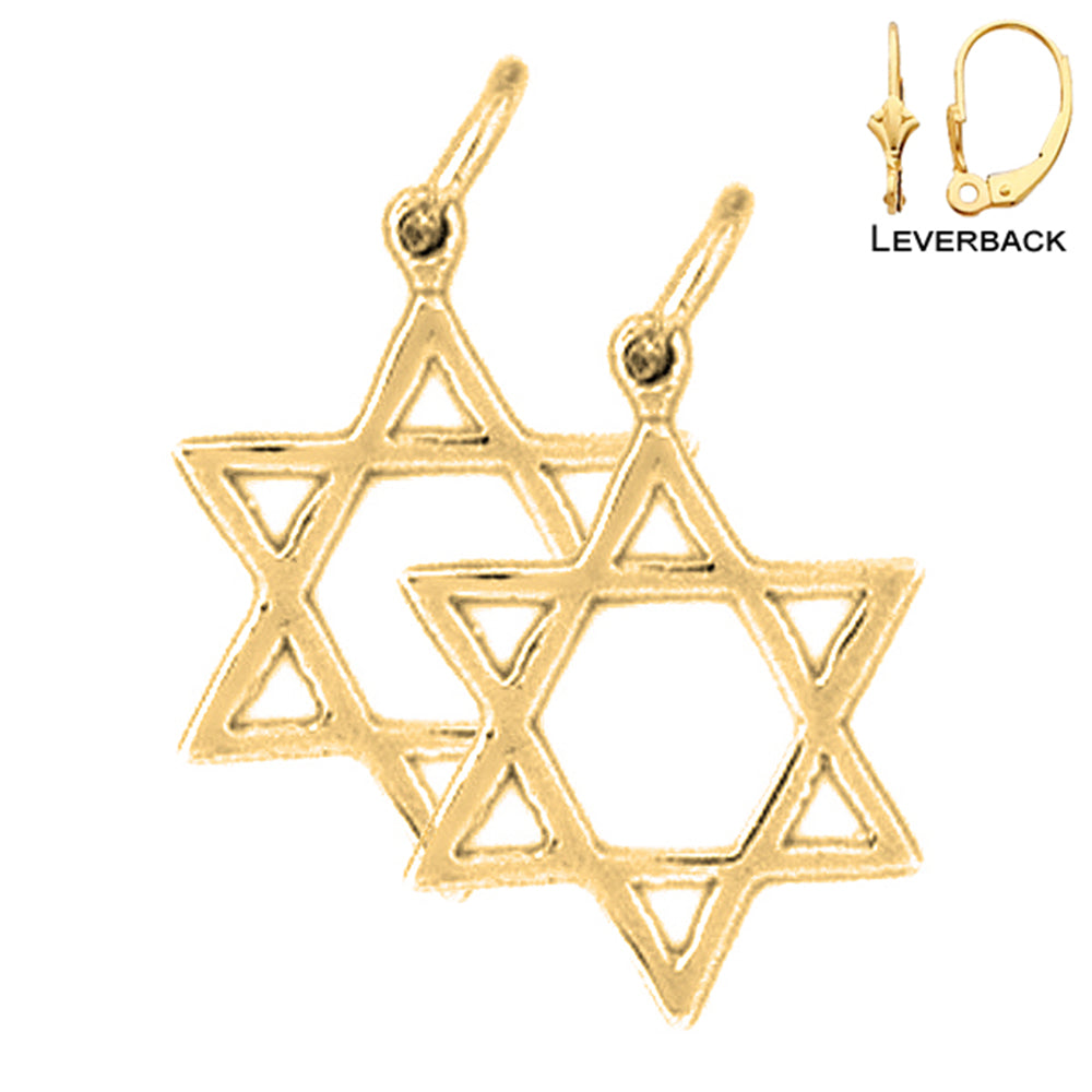 This is a gorgeous 14k yellow gold 20mm star of david earrings. This 14k yellow gold earrings measures 20 mm in length by 13 mm width. JewelsObsession creates all gold jewelry in our state of the art manufacturing facility.