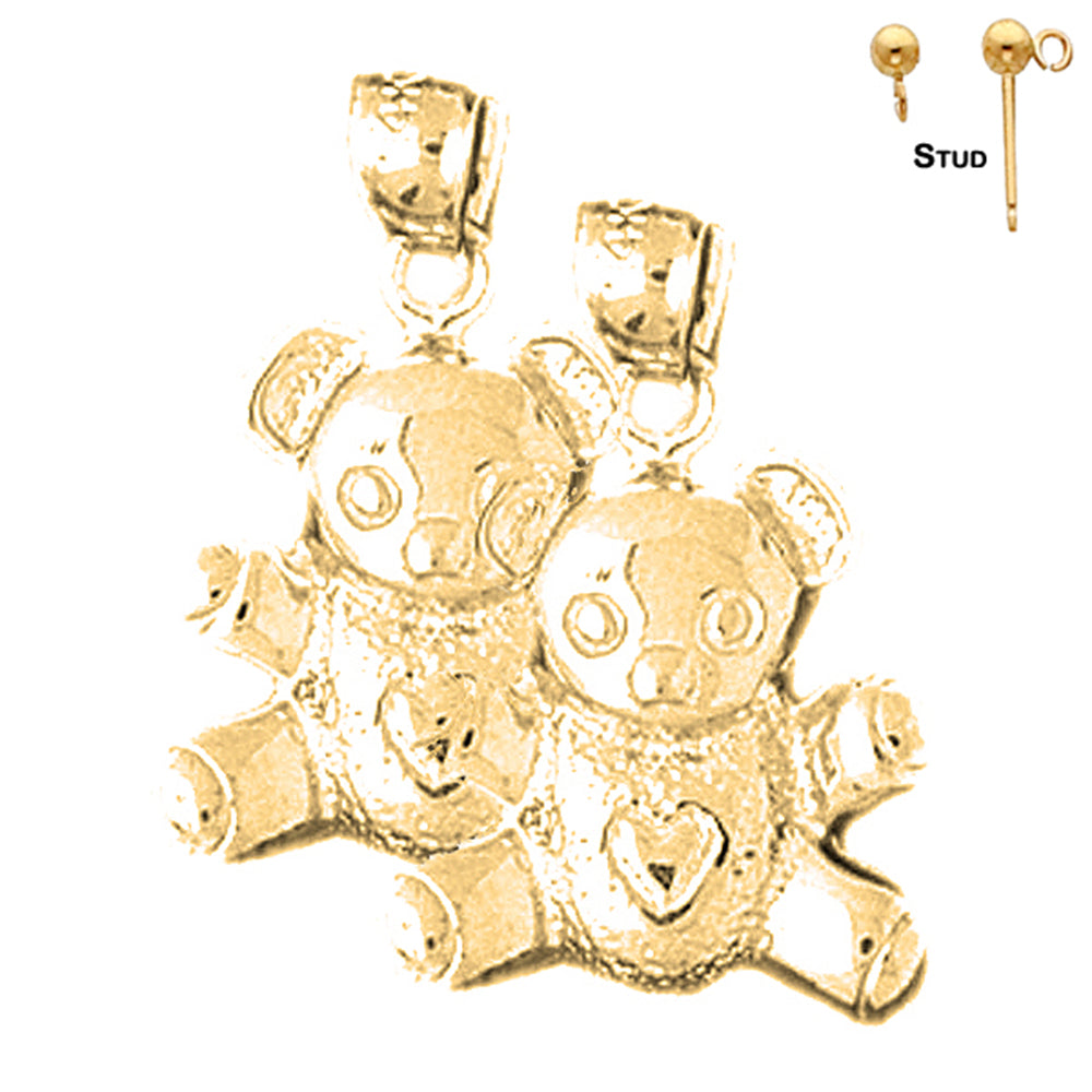 14K or 18K Gold 20mm Teddy Bear Earrings