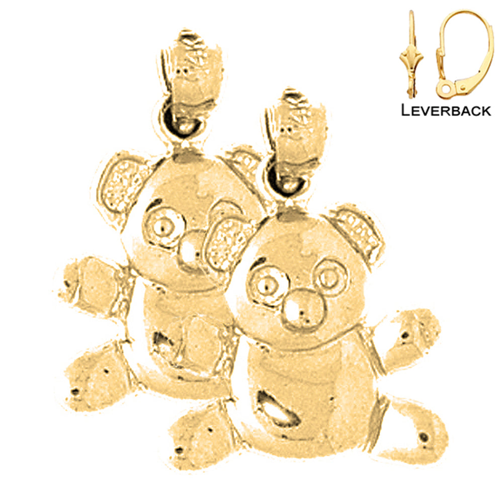 14K or 18K Gold 20mm Teddy Bear Earrings