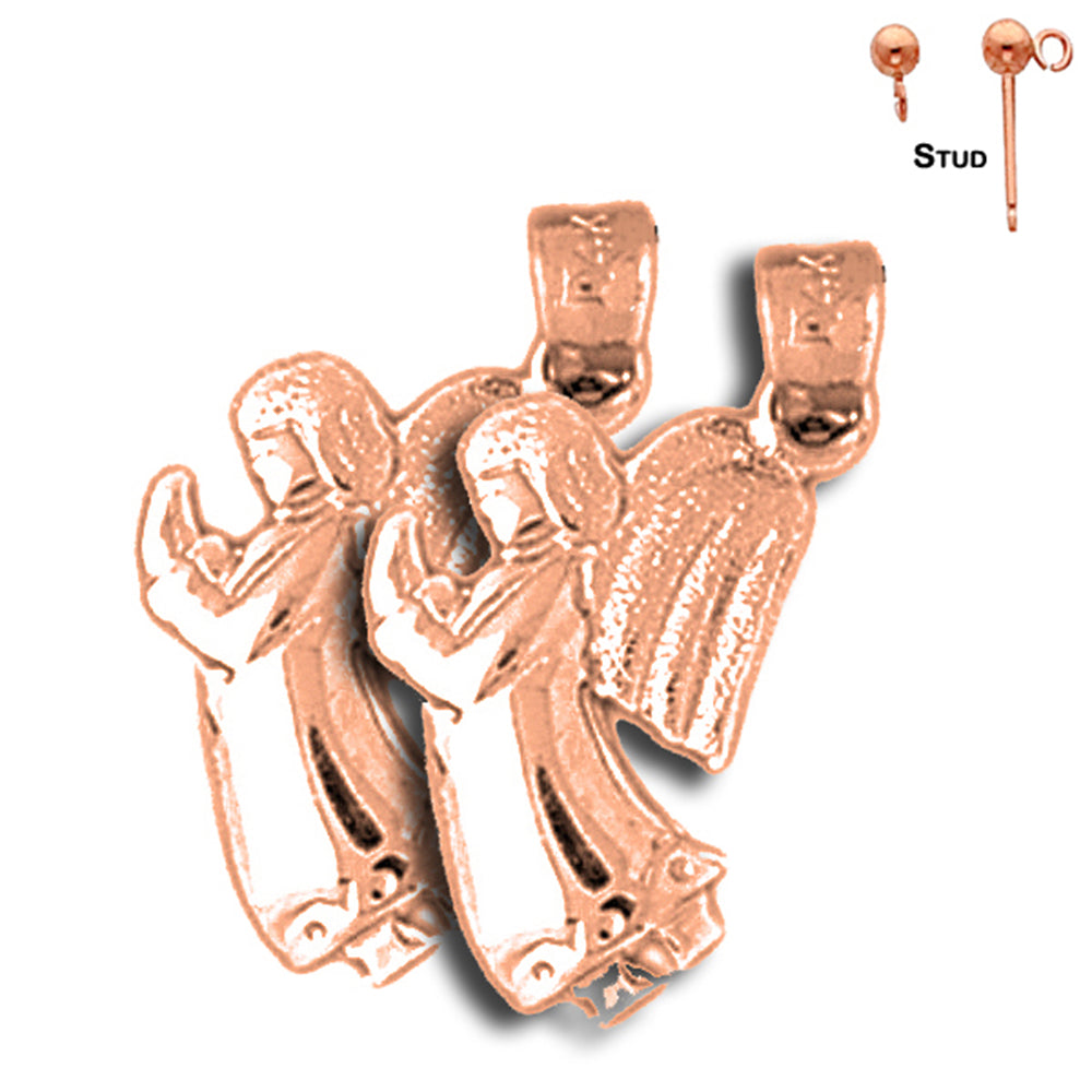 This is a stunning 14k yellow gold 21mm angel earrings. This 14k yellow gold earrings measures 21 mm in length by 14 mm width. JewelsObsession creates all gold jewelry in our state of the art manufacturing facility.