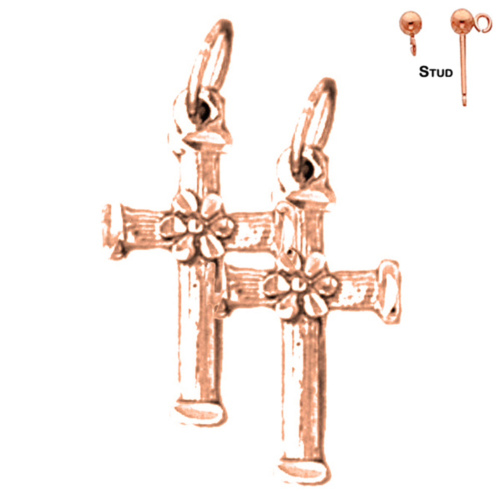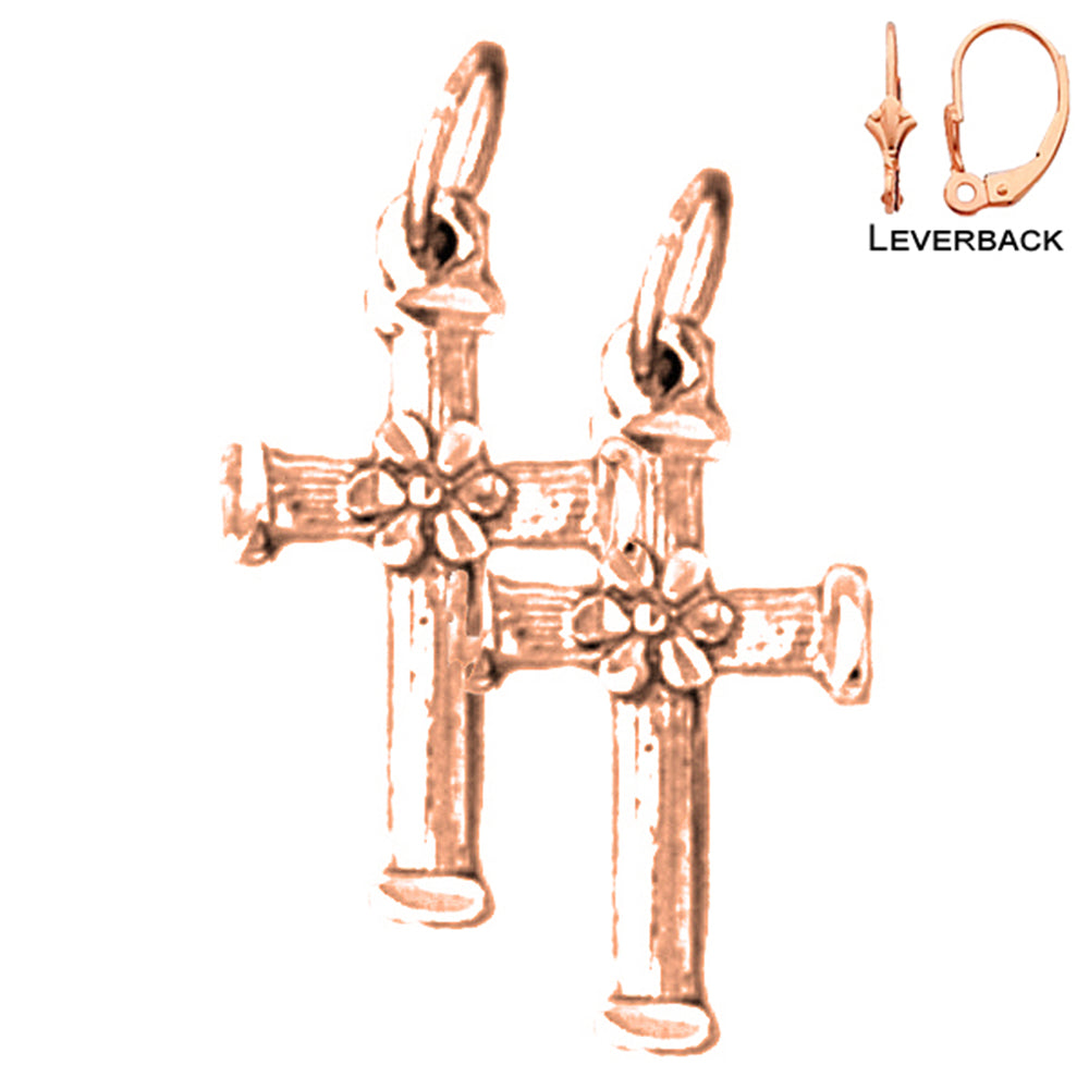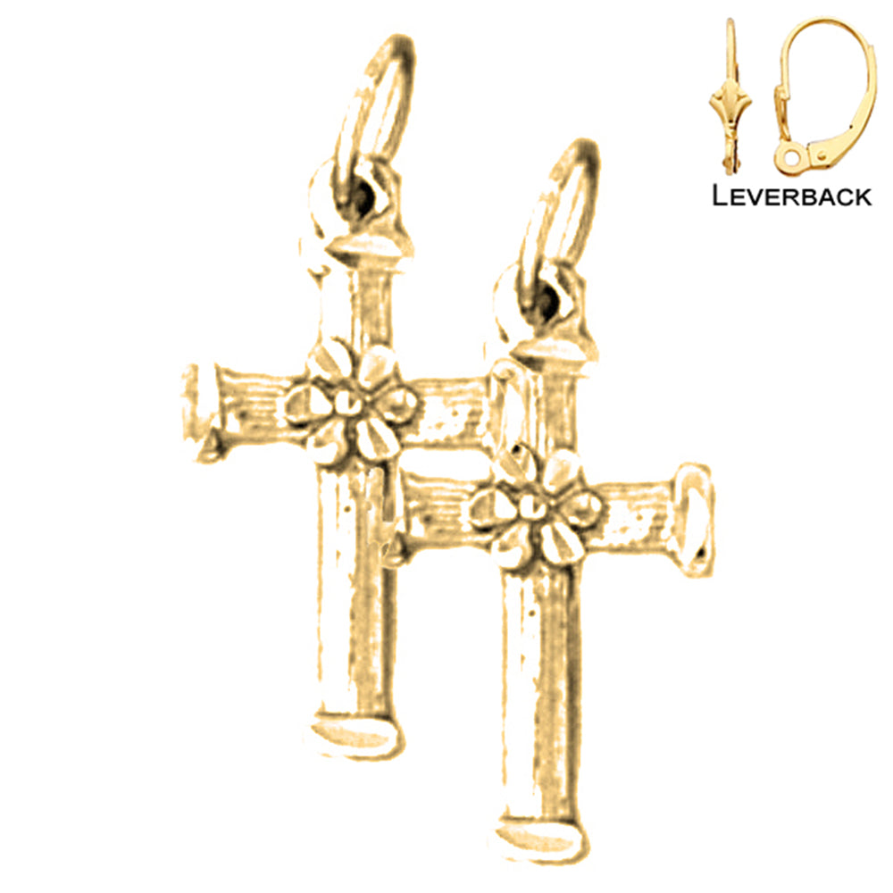 This is a gorgeous 14k yellow gold 21mm floral cross earrings. This 14k yellow gold earrings measures 21 mm in length by 10 mm width. JewelsObsession creates all gold jewelry in our state of the art manufacturing facility.
