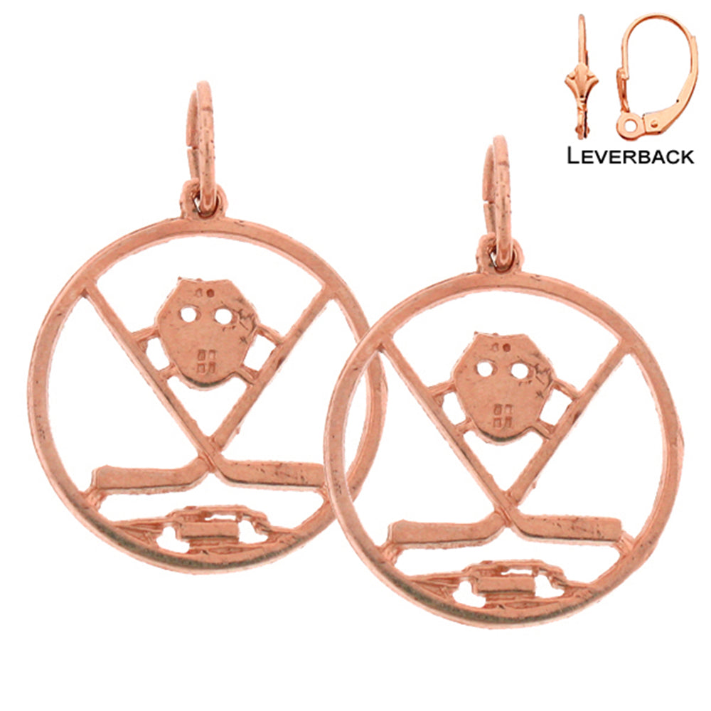 14K or 18K Gold 21mm Hockey Mask, Sticks, And Puck Earrings