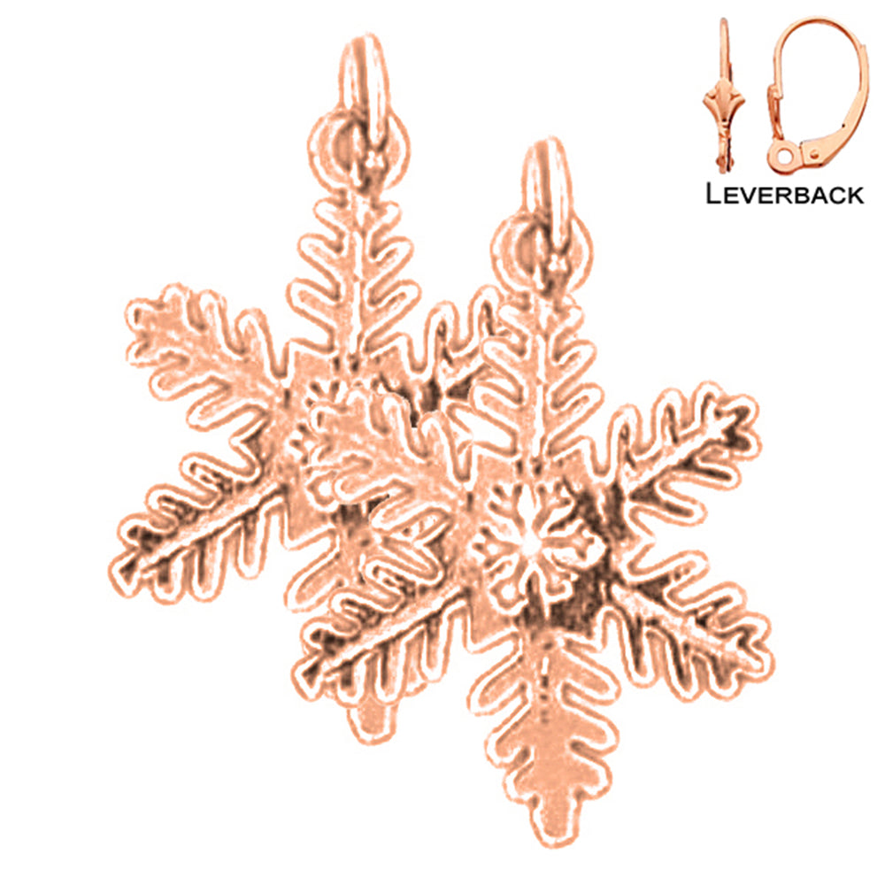 This is an elegant 14k yellow gold 21mm snow flake earrings. This 14k yellow gold earrings measures 21 mm in length by 14 mm width. JewelsObsession creates all gold jewelry in our state of the art manufacturing facility.