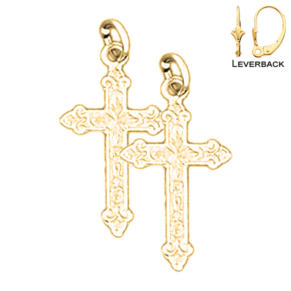 This is a gorgeous 14k yellow gold 22mm budded cross earrings. This 14k yellow gold earrings measures 22 mm in length by 11 mm width. JewelsObsession creates all gold jewelry in our state of the art manufacturing facility.