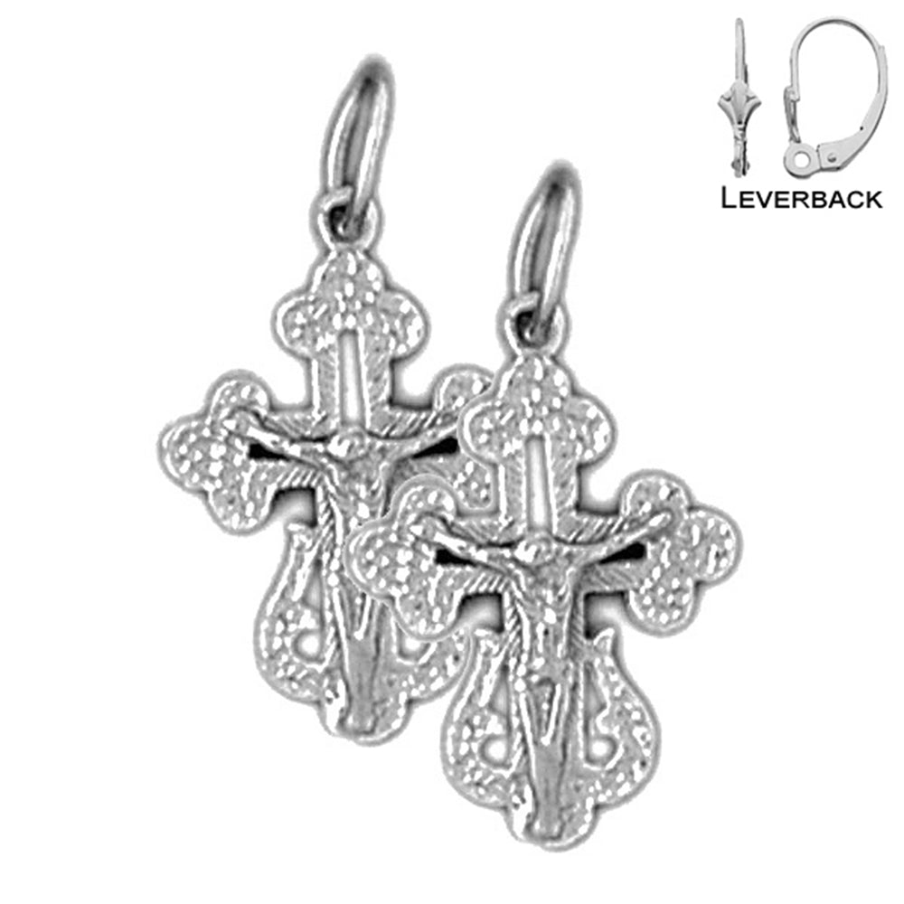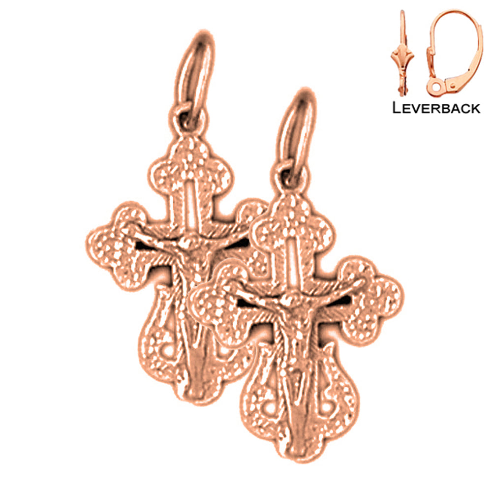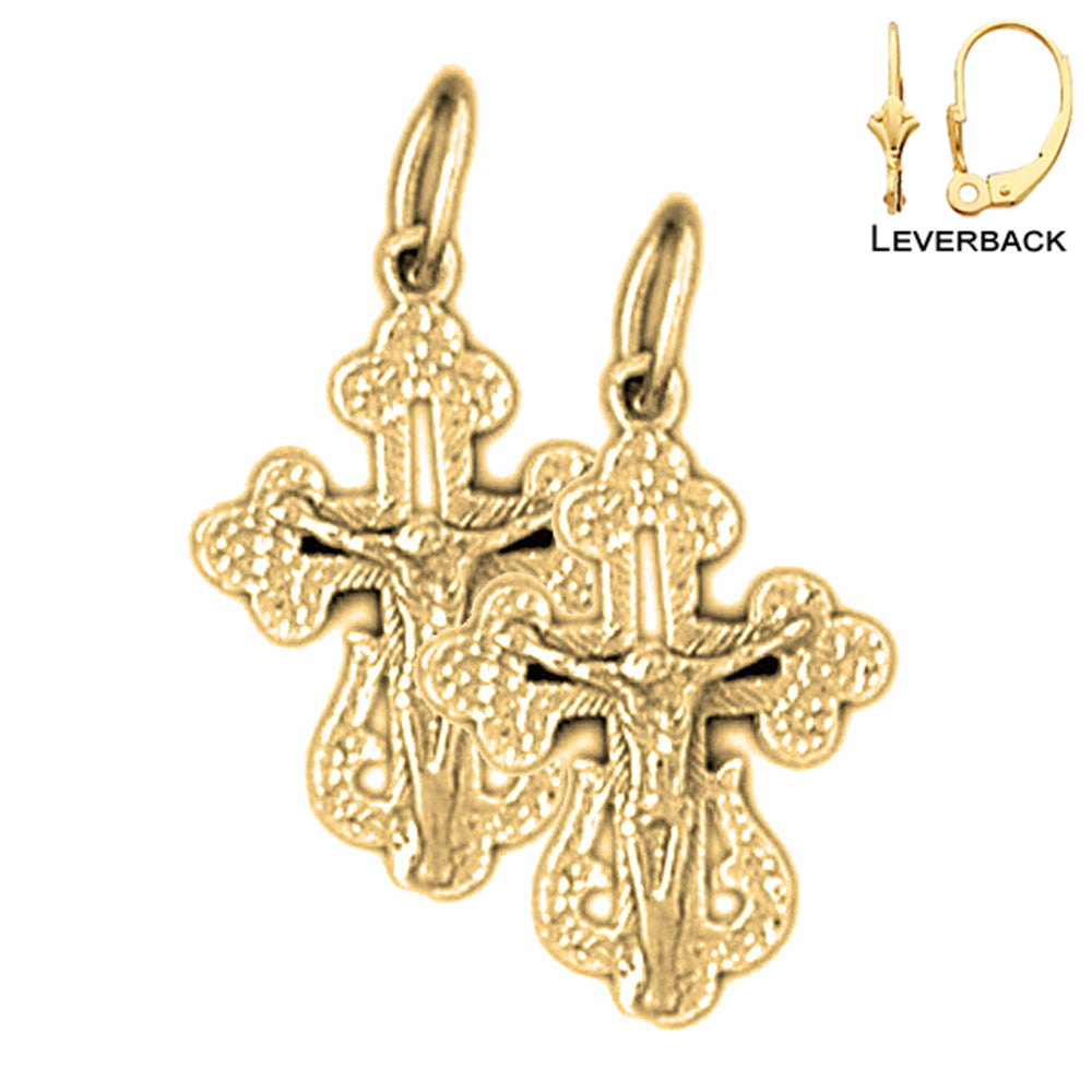 14K or 18K Gold 22mm Budded Crucifix Earrings