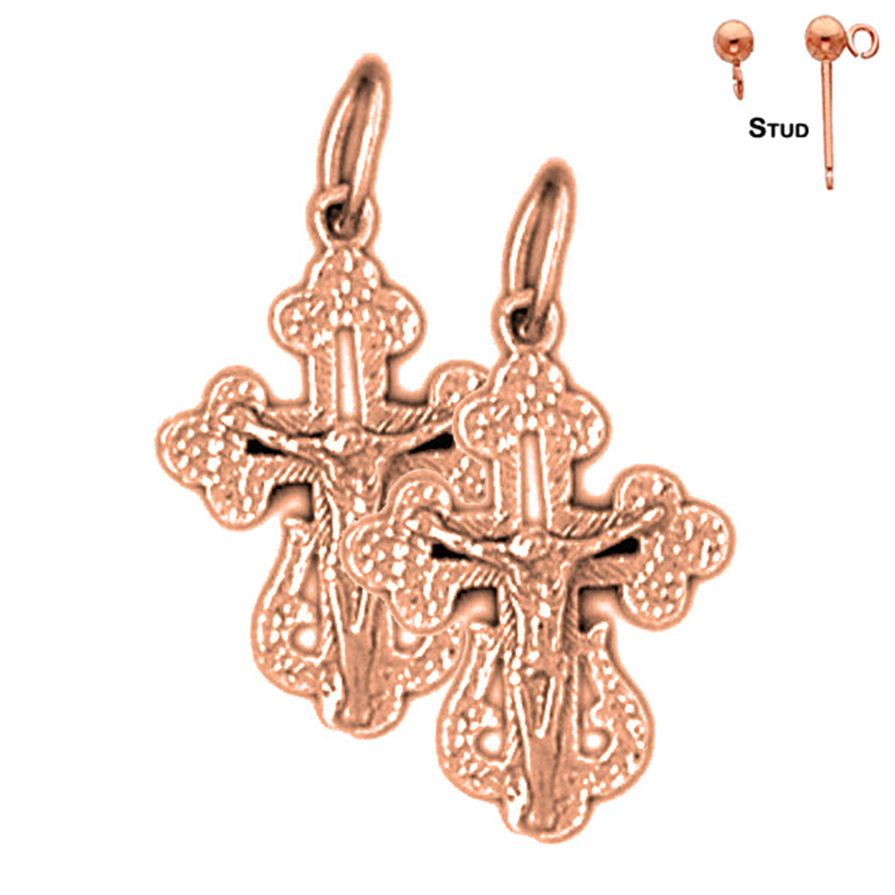14K or 18K Gold Budded Crucifix Earrings