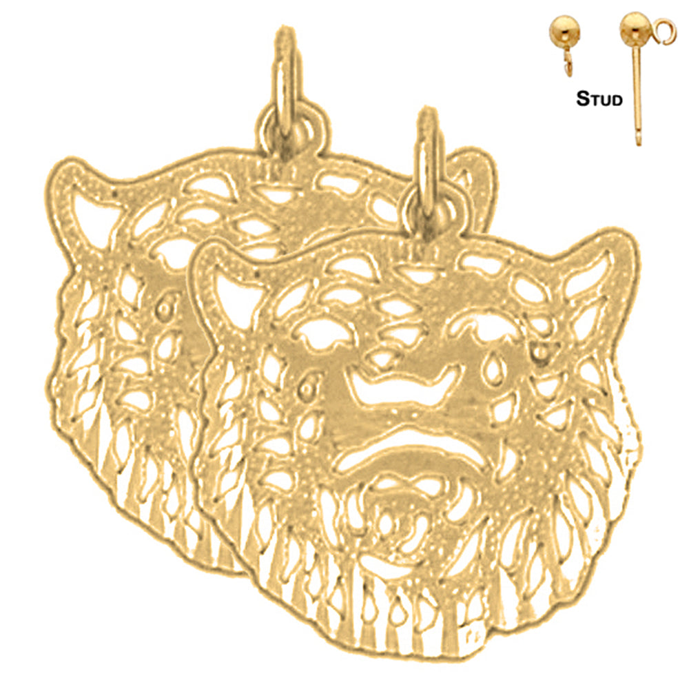 This is a stunning 14k yellow gold 22mm tiger head earrings. This 14k yellow gold earrings measures 22 mm in length by 17 mm width. JewelsObsession creates all gold jewelry in our state of the art manufacturing facility.