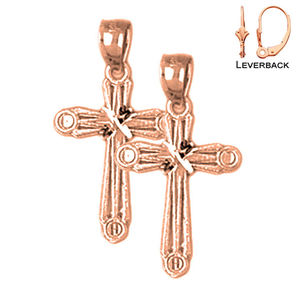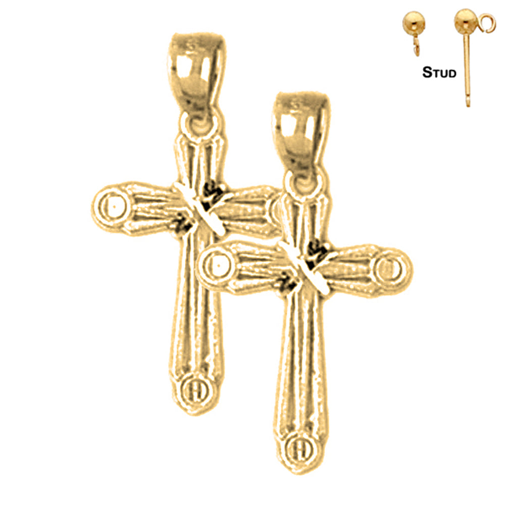 14K or 18K Gold 23mm Budded Cross Earrings