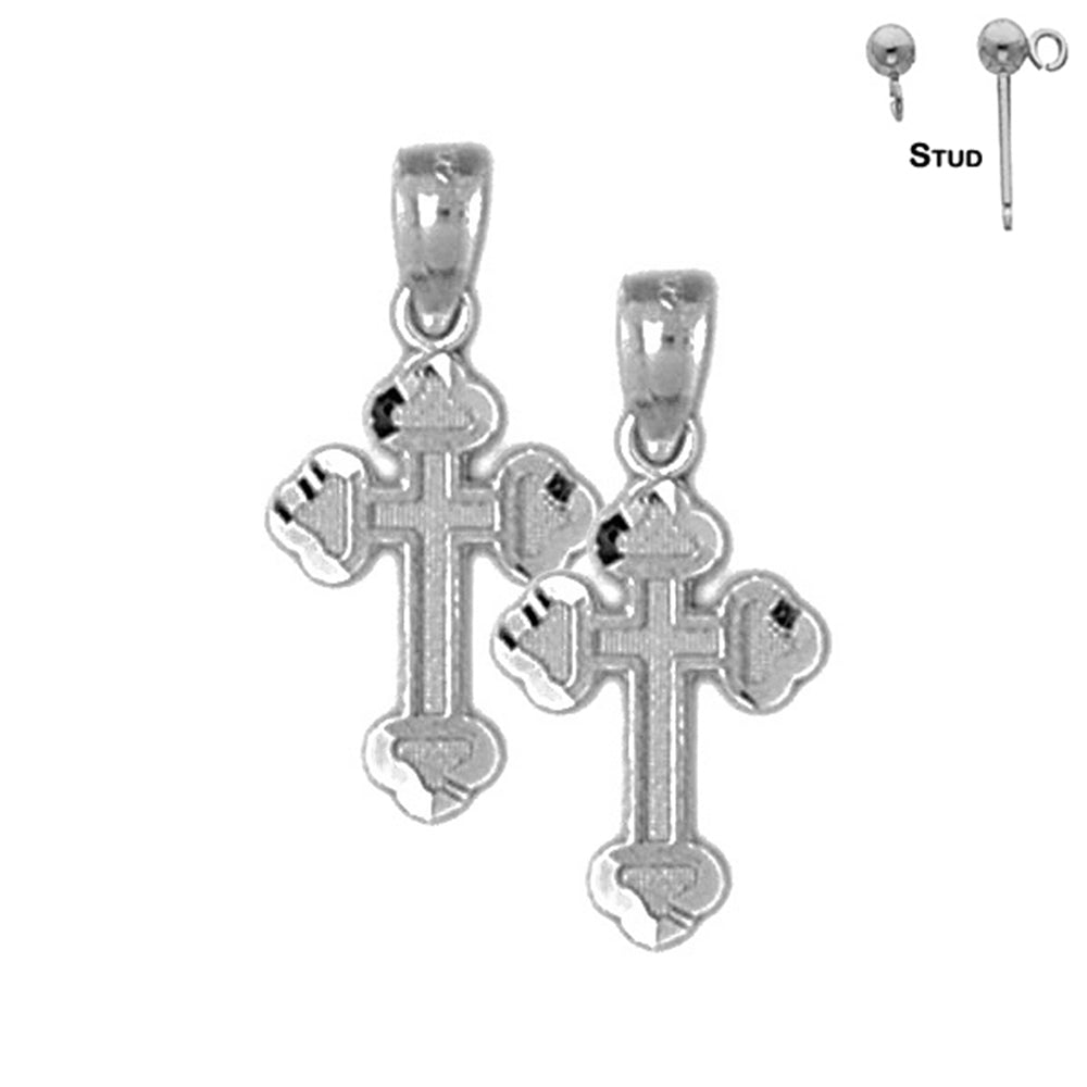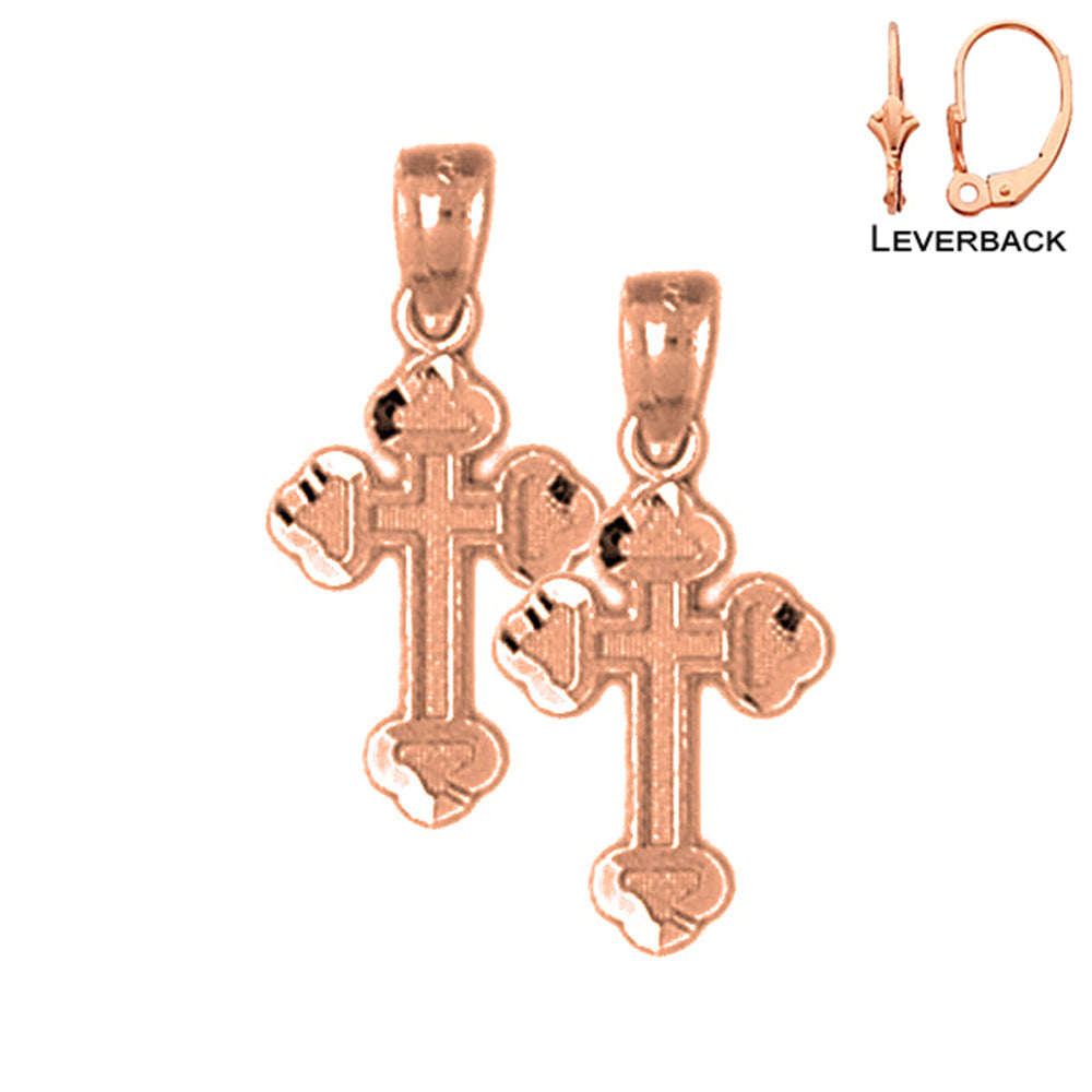14K or 18K Gold 23mm Budded Cross Earrings