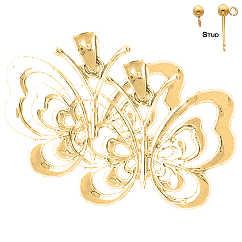 This is a stunning 14k yellow gold 23mm butterflies earrings. This 14k yellow gold earrings measures 23 mm in length by 28 mm width. JewelsObsession creates all gold jewelry in our state of the art manufacturing facility.