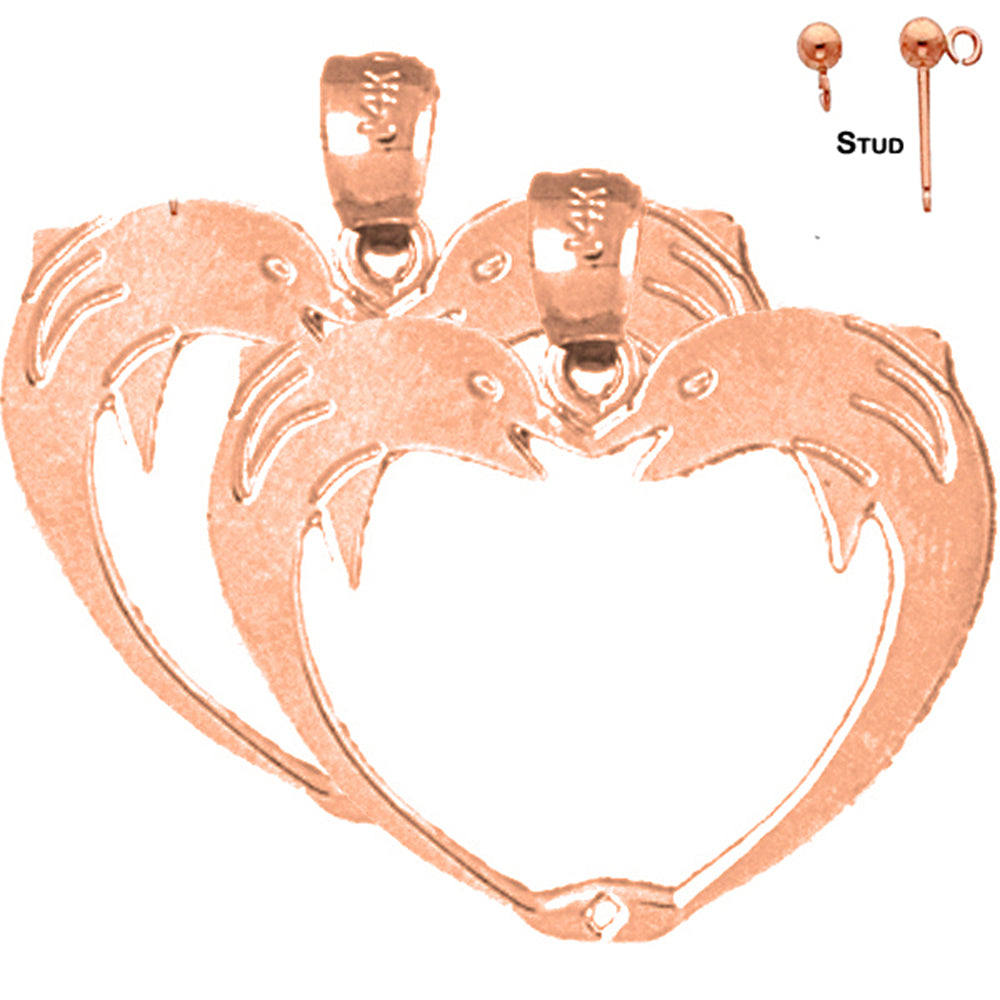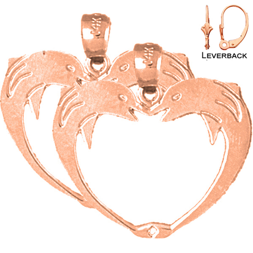14K or 18K Gold 23mm Dolphin Heart Earrings