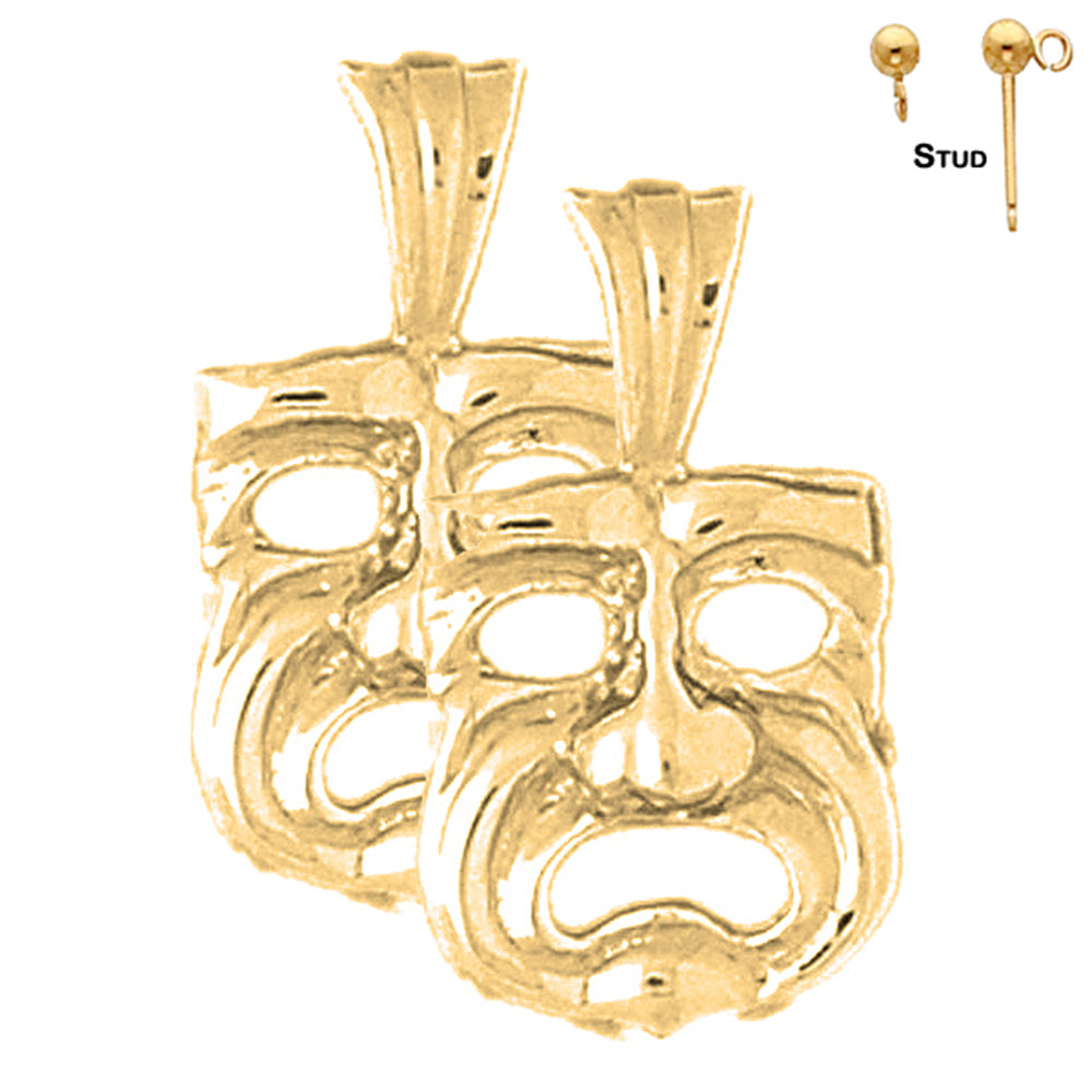 14K or 18K Gold 23mm Drama Mask, Cry Later Earrings