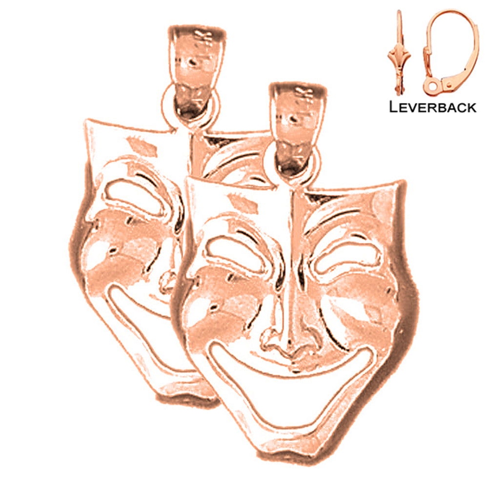 14K or 18K Gold 23mm Drama Mask, Laugh Now Earrings
