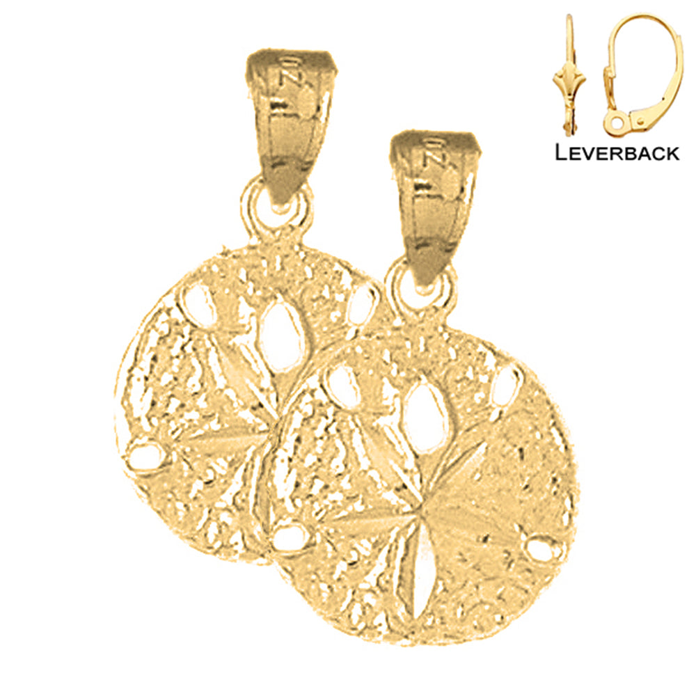 This is a stunning 14k yellow gold 23mm sand dollar earrings. This 14k yellow gold earrings measures 23 mm in length by 15 mm width. JewelsObsession creates all gold jewelry in our state of the art manufacturing facility.
