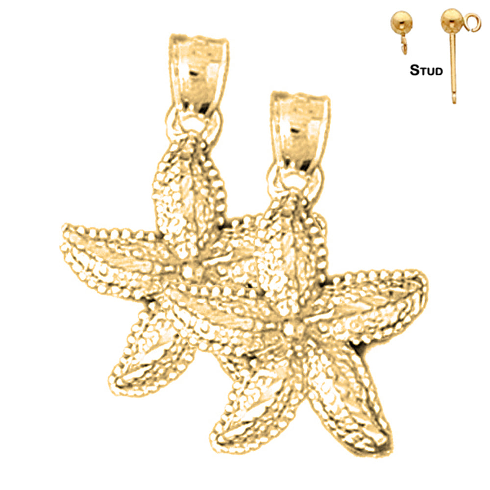 This is a gorgeous 14k yellow gold 23mm starfish earrings. This 14k yellow gold earrings measures 23 mm in length by 17 mm width. JewelsObsession creates all gold jewelry in our state of the art manufacturing facility.