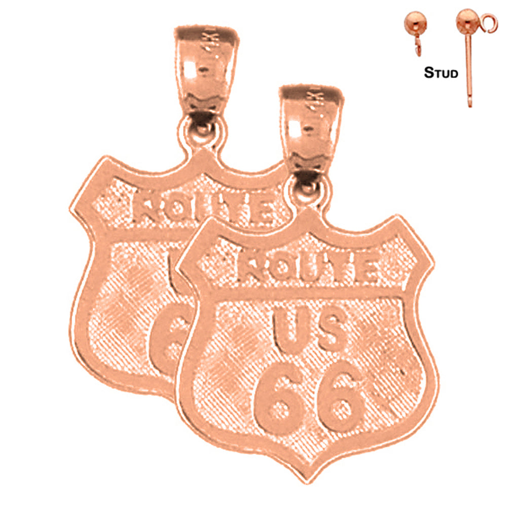 14K or 18K Gold 23mm U.S. Route 66 Earrings