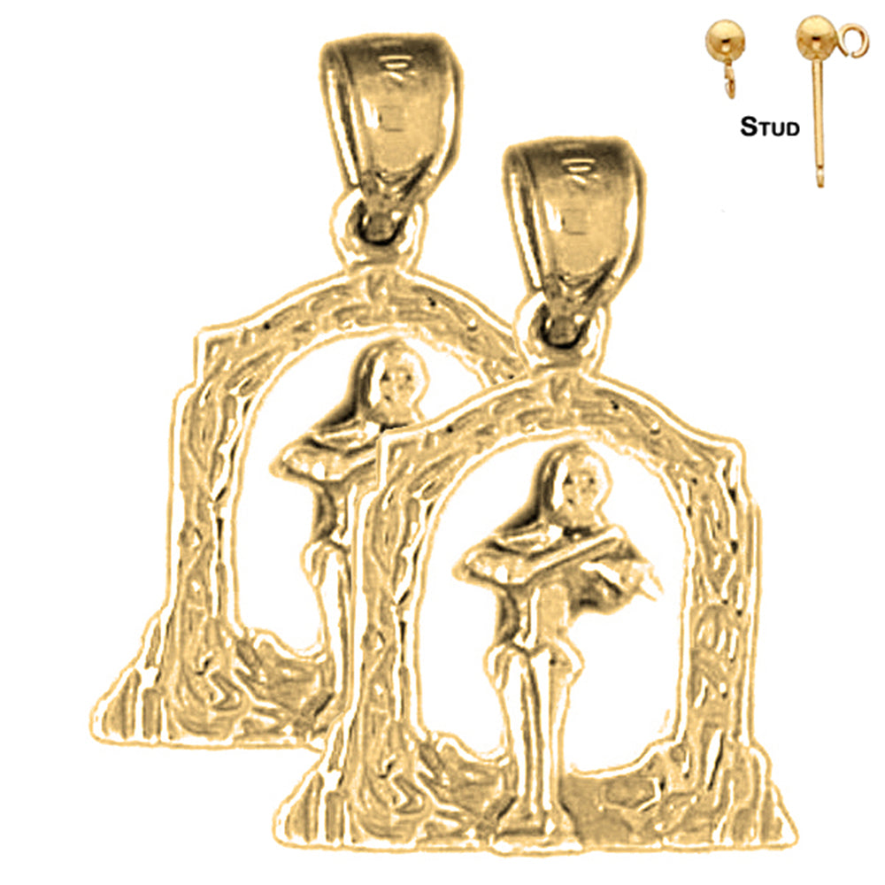 This is a stunning 14k yellow gold 24mm angel playing violin earrings. This 14k yellow gold earrings measures 24 mm in length by 17 mm width. JewelsObsession creates all gold jewelry in our state of the art manufacturing facility.