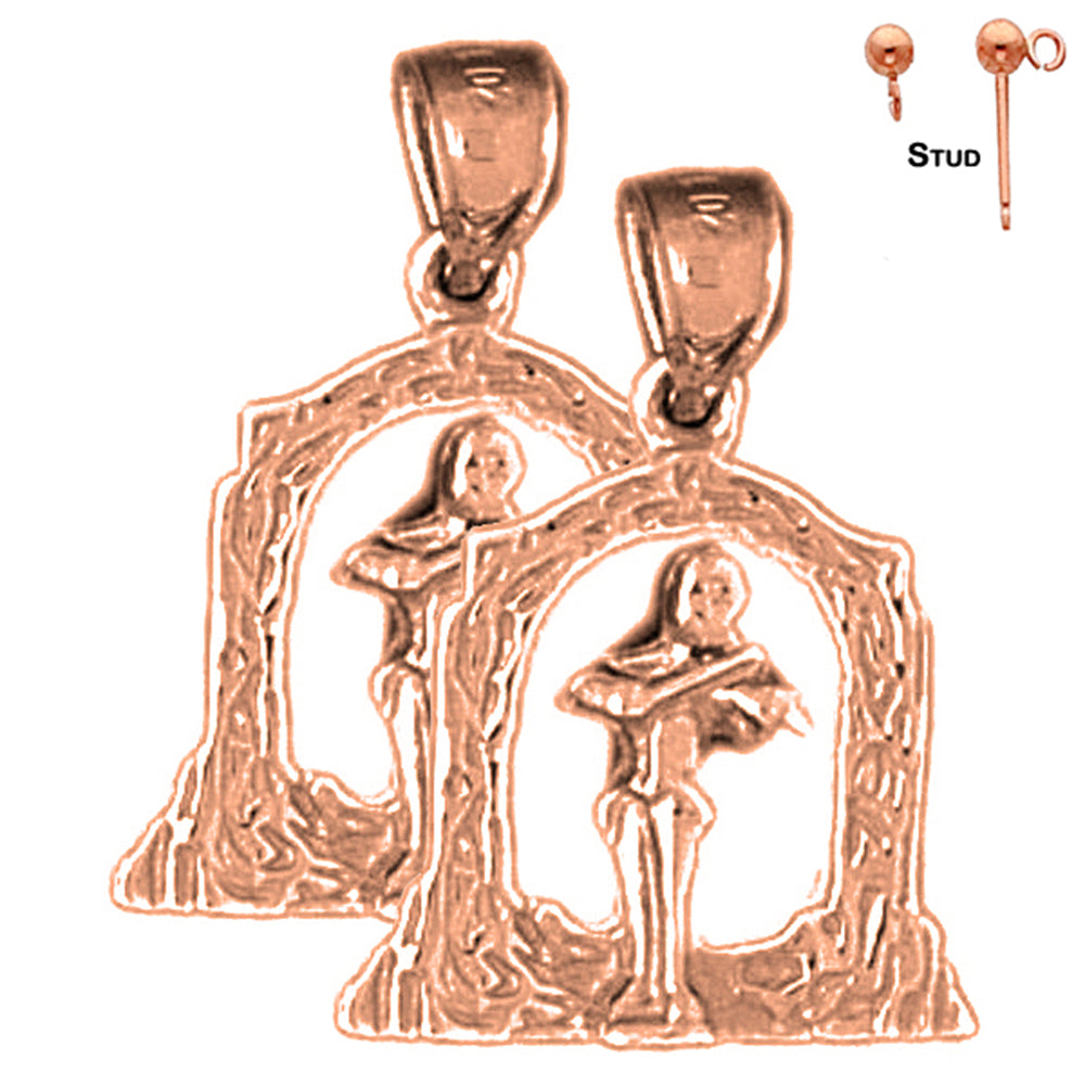 14K or 18K Gold 24mm Angel Playing Violin Earrings