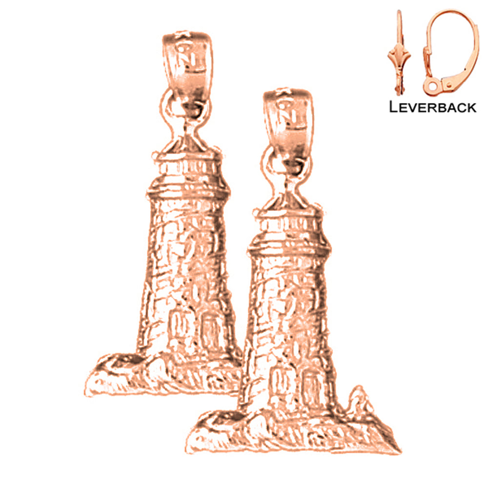 This is a gorgeous 14k yellow gold 24mm lighthouse earrings. This 14k yellow gold earrings measures 24 mm in length by 14 mm width. JewelsObsession creates all gold jewelry in our state of the art manufacturing facility.