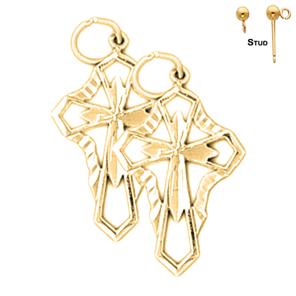 This is a stunning 14k yellow gold 24mm passion cross earrings. This 14k yellow gold earrings measures 24 mm in length by 14 mm width. JewelsObsession creates all gold jewelry in our state of the art manufacturing facility.