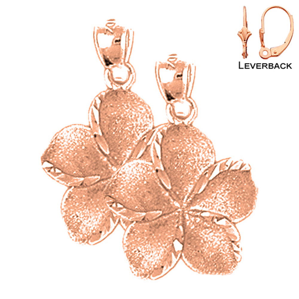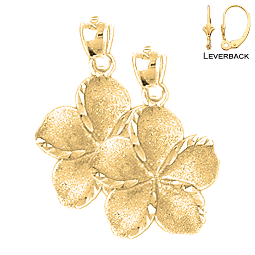 14K or 18K Gold 24mm Plumeria Flower Earrings