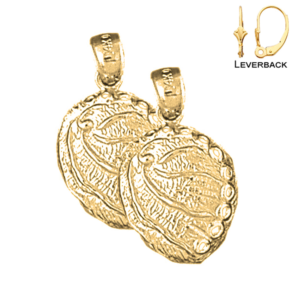 This is a stunning 14k yellow gold 24mm shell earrings. This 14k yellow gold earrings measures 24 mm in length by 15 mm width. JewelsObsession creates all gold jewelry in our state of the art manufacturing facility.