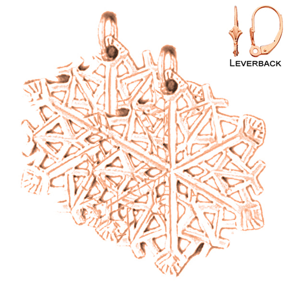 This is a stunning 14k yellow gold 24mm snow flake earrings. This 14k yellow gold earrings measures 24 mm in length by 19 mm width. JewelsObsession creates all gold jewelry in our state of the art manufacturing facility.