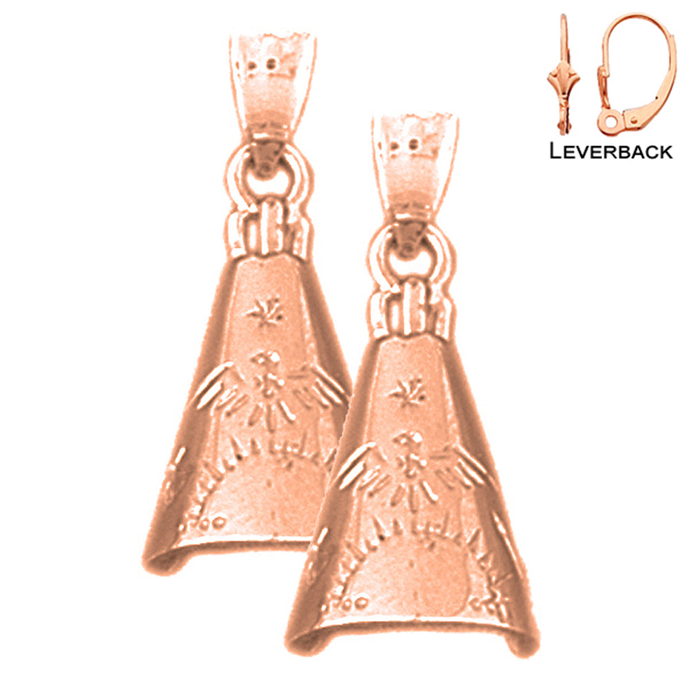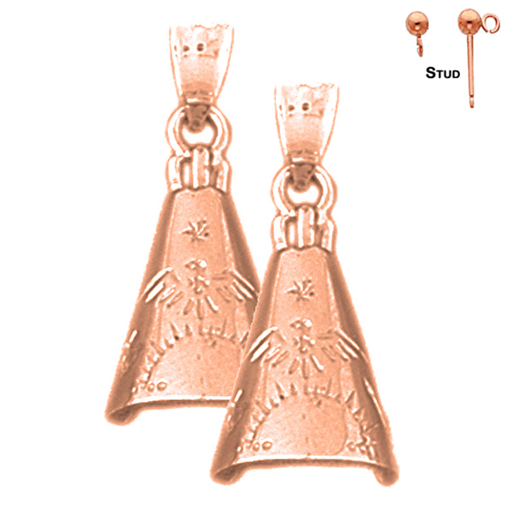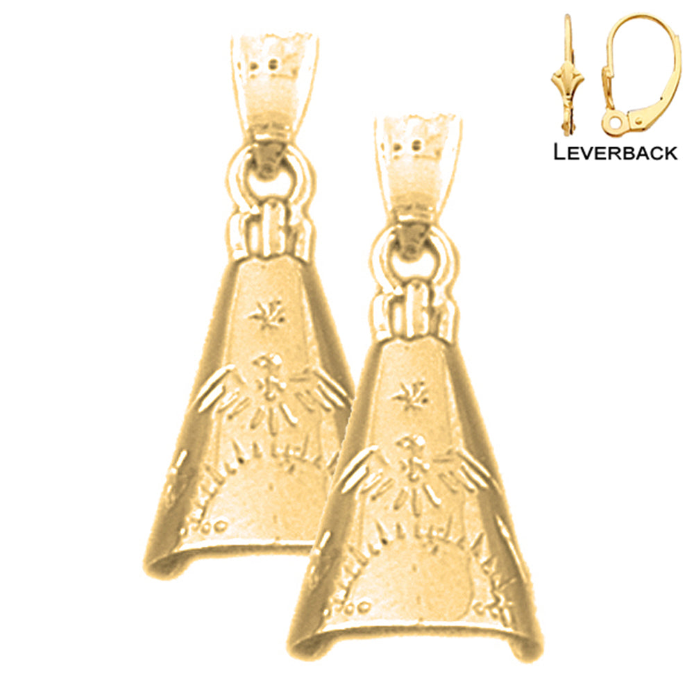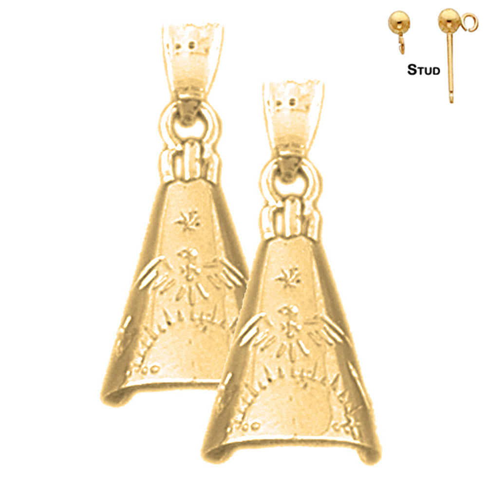 This is a beautiful 14k yellow gold 24mm teepee earrings. This 14k yellow gold earrings measures 24 mm in length by 10 mm width. JewelsObsession creates all gold jewelry in our state of the art manufacturing facility.
