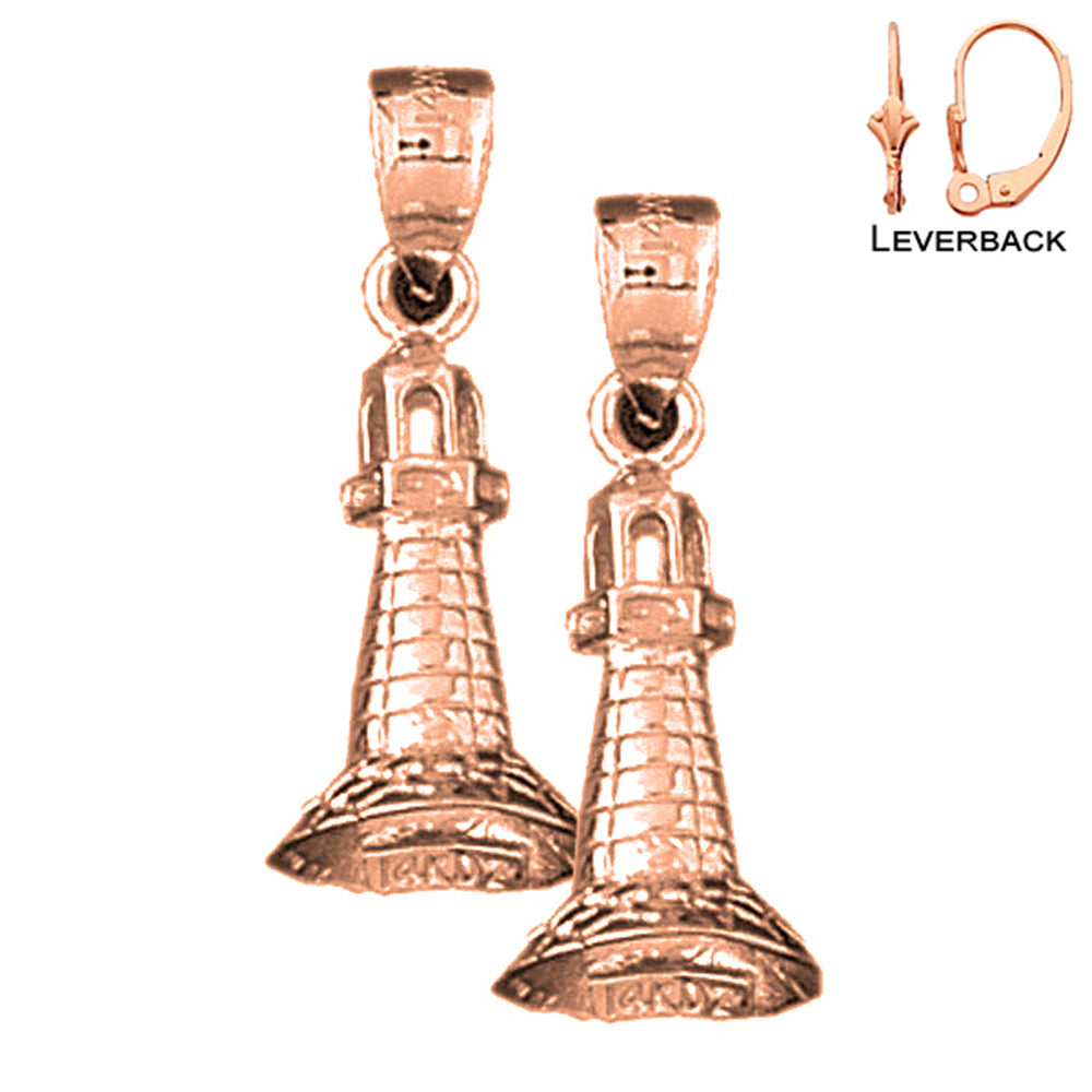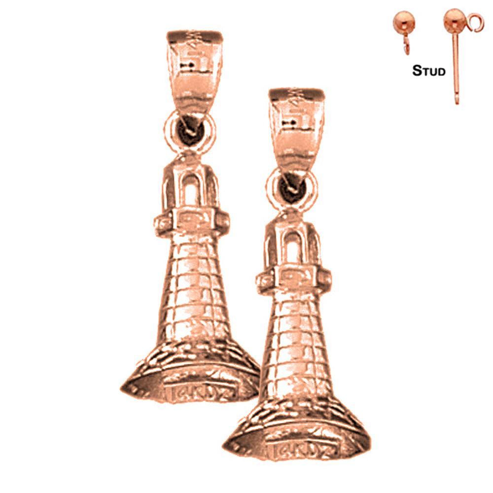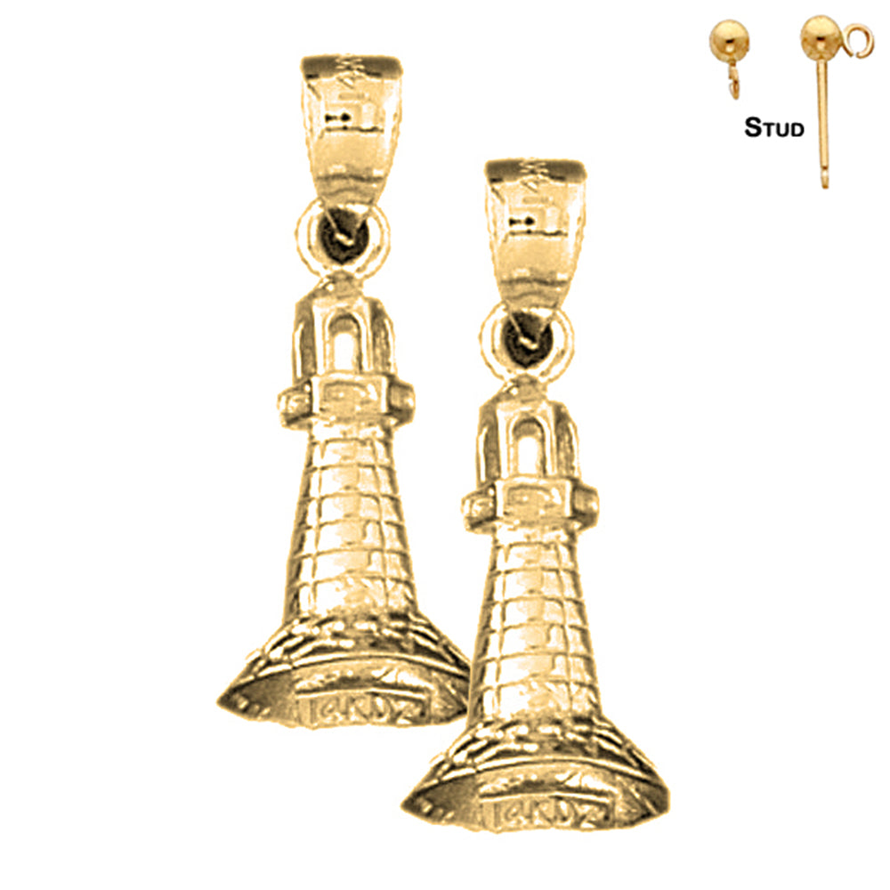 14K or 18K Gold 25mm 3D Lighthouse Earrings