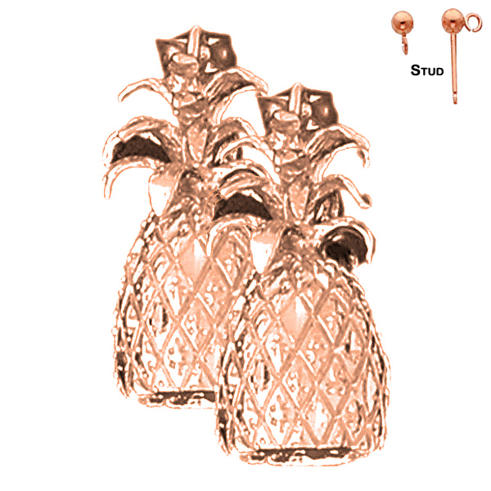 This is an elegant 14k yellow gold 25mm 3d pineapple earrings. This 14k yellow gold earrings measures 25 mm in length by 13 mm width. JewelsObsession creates all gold jewelry in our state of the art manufacturing facility.