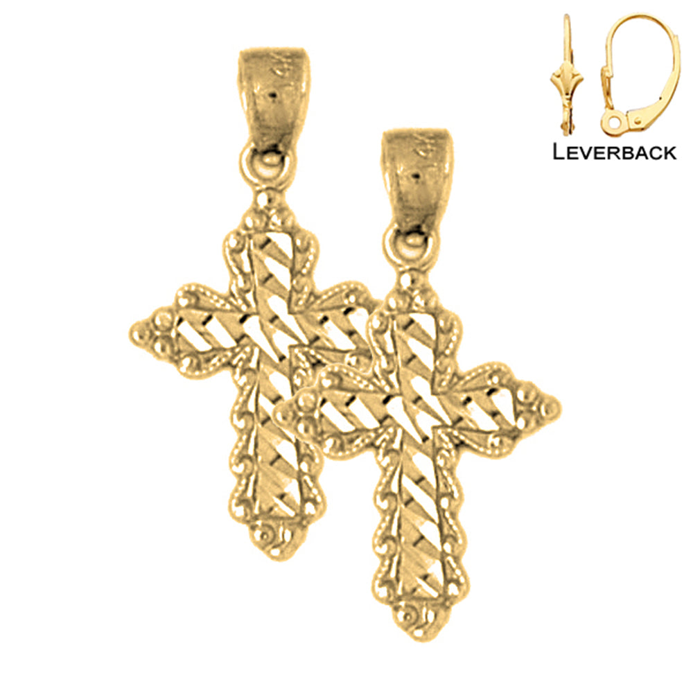 This is a stunning 14k yellow gold 25mm budded cross earrings. This 14k yellow gold earrings measures 25 mm in length by 13 mm width. JewelsObsession creates all gold jewelry in our state of the art manufacturing facility.