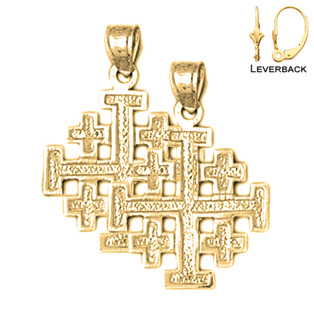 14K or 18K Gold 25mm Jerusalem Cross Earrings