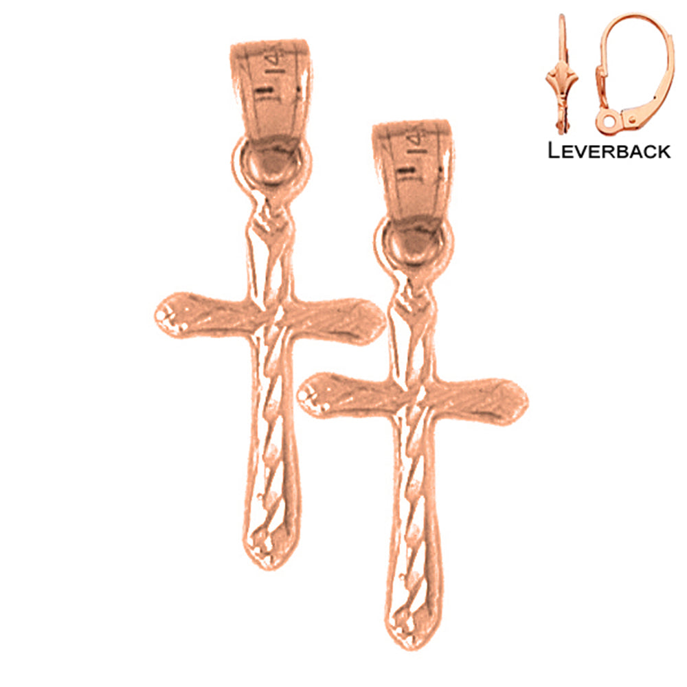 This is an elegant 14k yellow gold 25mm passion cross earrings. This 14k yellow gold earrings measures 25 mm in length by 11 mm width. JewelsObsession creates all gold jewelry in our state of the art manufacturing facility.
