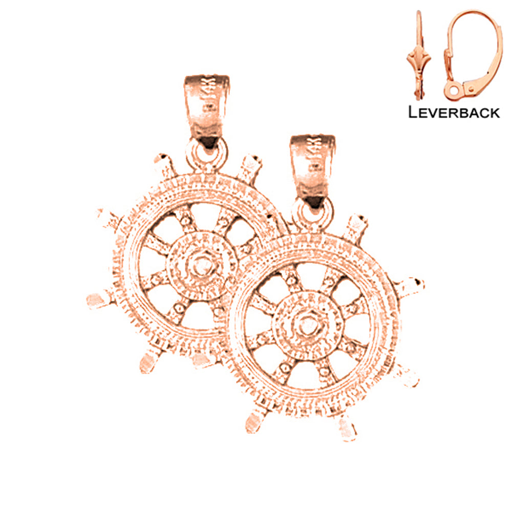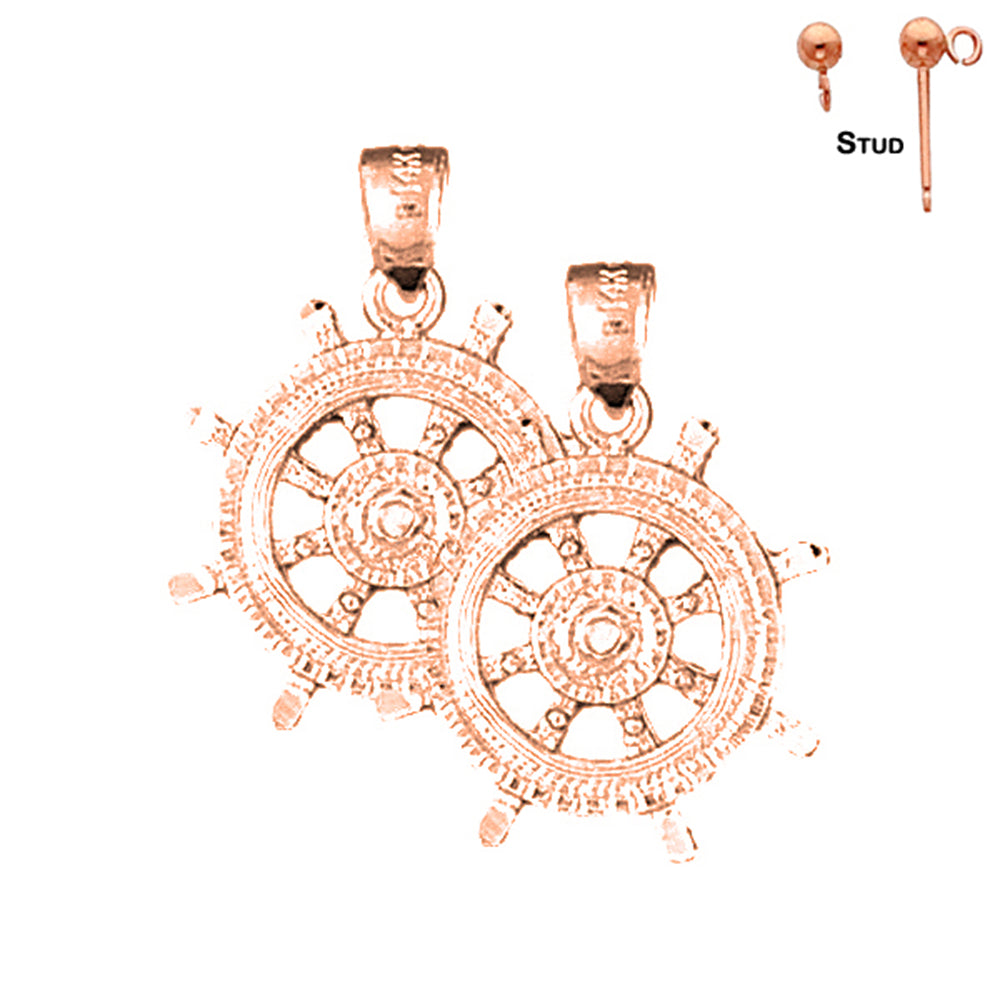 14K or 18K Gold 25mm Ships Wheel Earrings