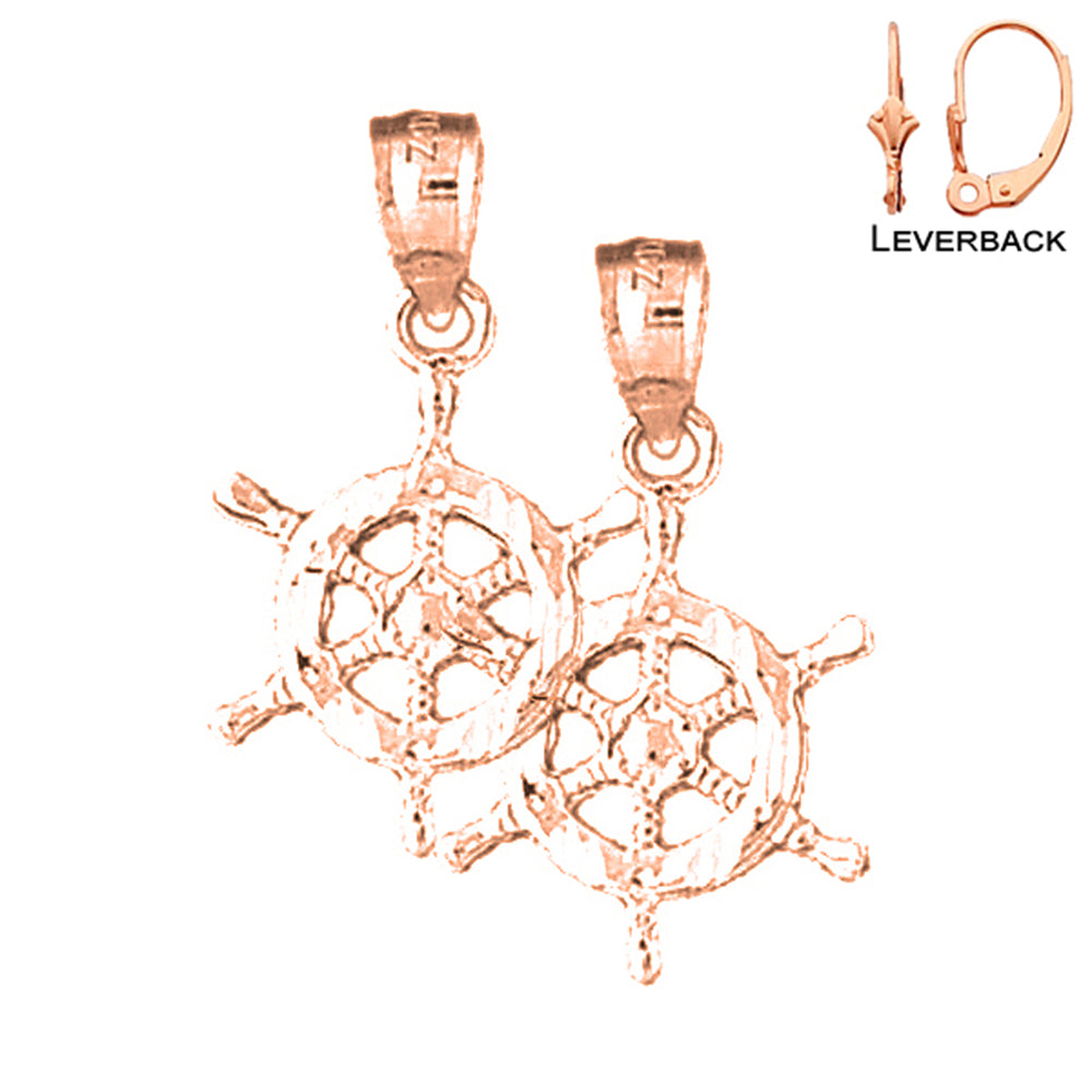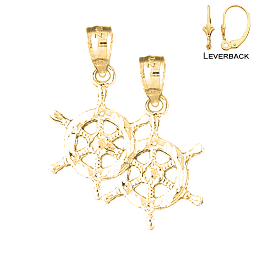 14K or 18K Gold 25mm Ships Wheel Earrings